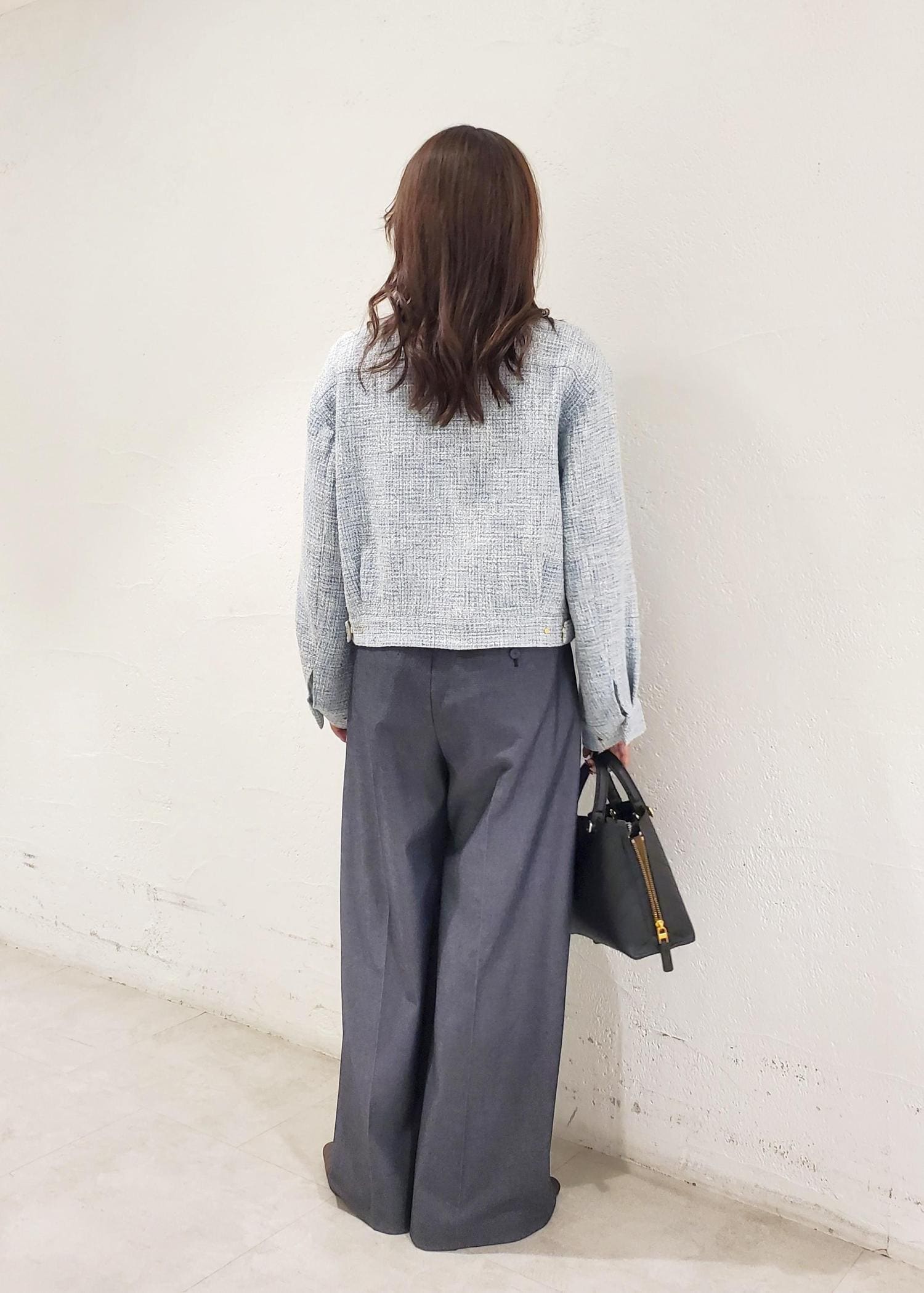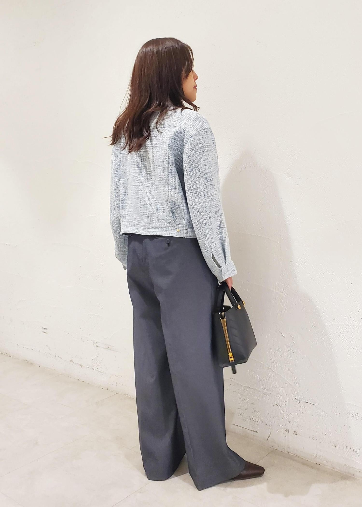腰骨にかかるほどの着丈なので、ワンピースやスカートにもバランスよく合わせていただけます。 -