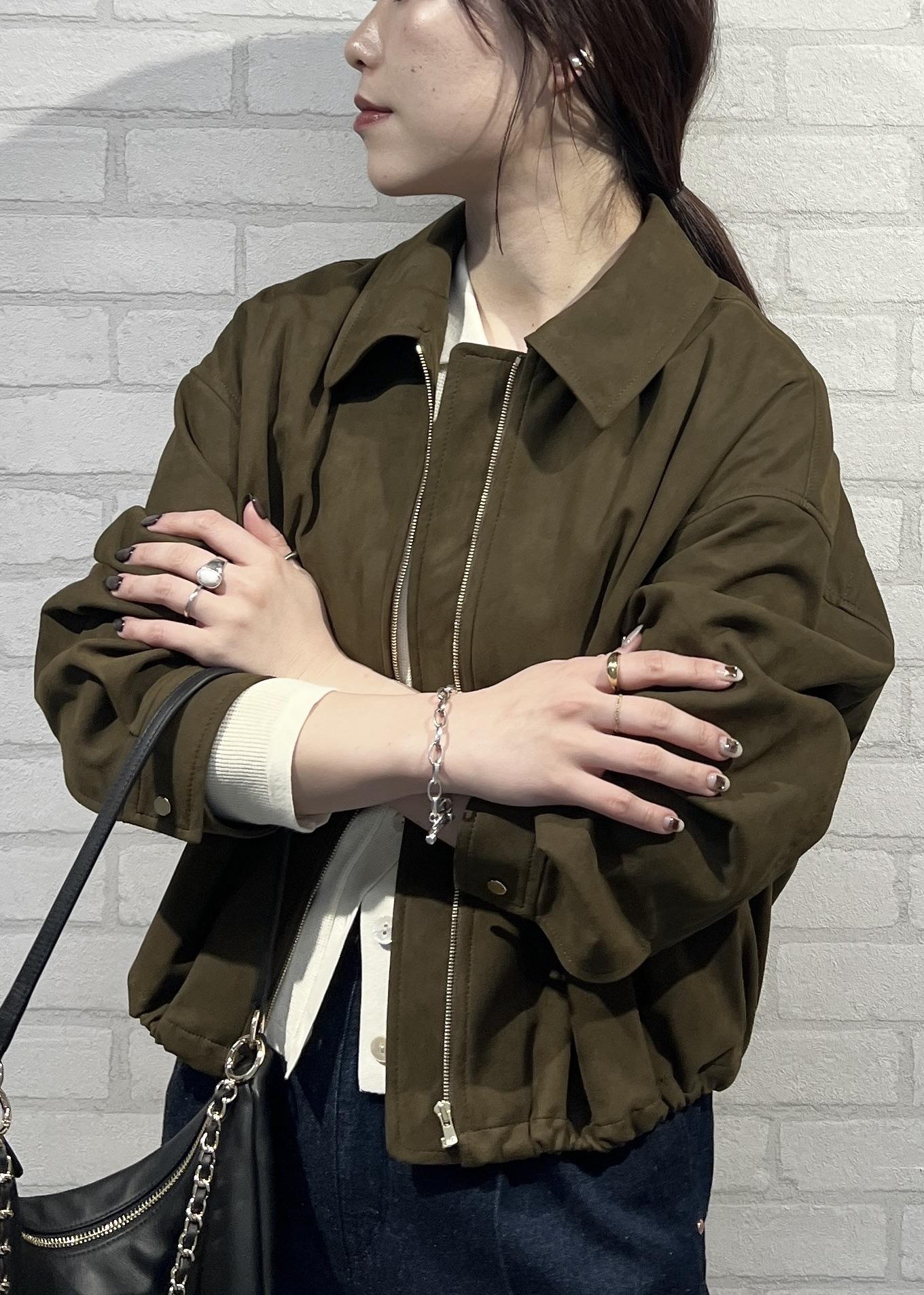 ROPÉスエードライクブルゾンダークブラウン / F¥64,900レビュー着丈は腰回りが隠れるくらいのジャスト丈。