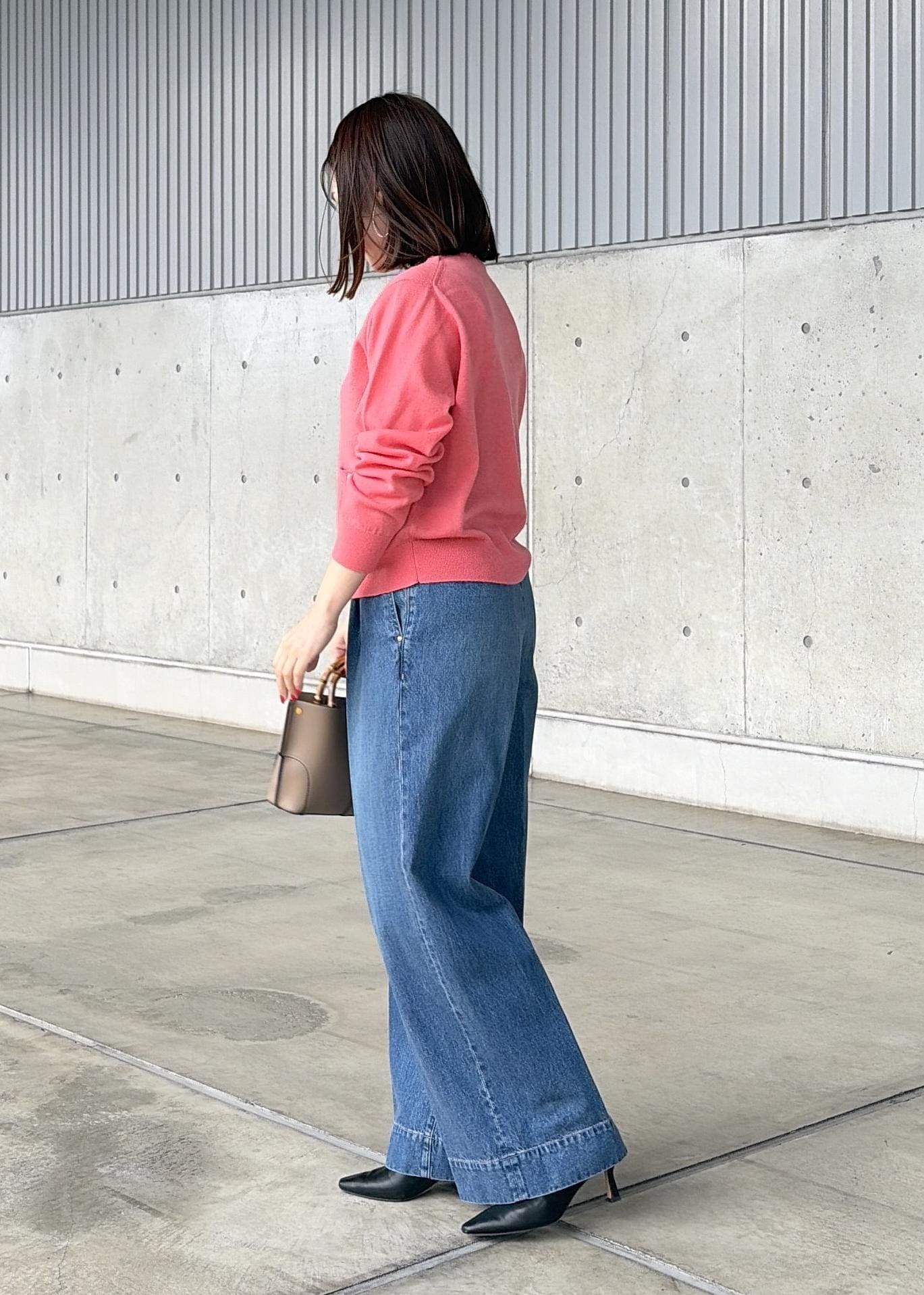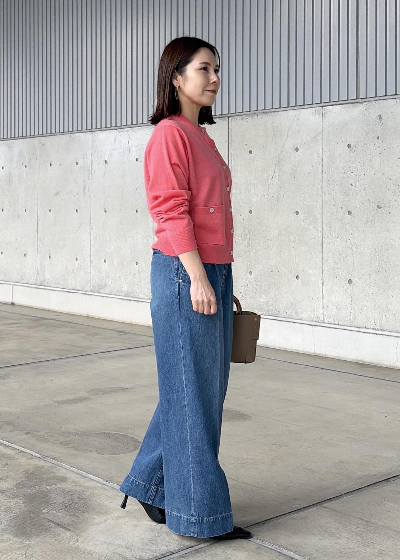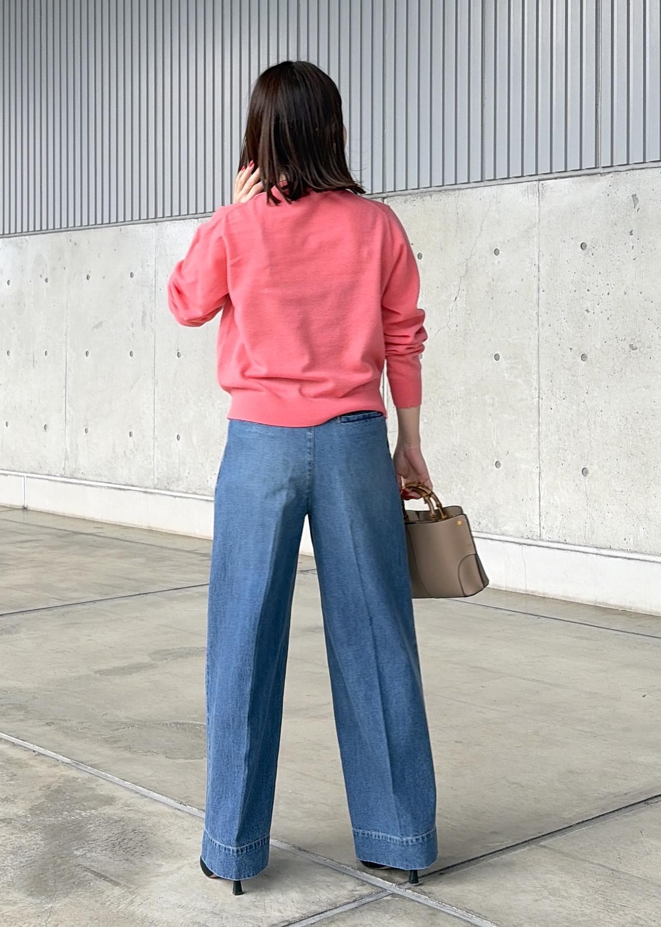 ハイウエストと、まっすぐなストレートシルエットで足長効果。