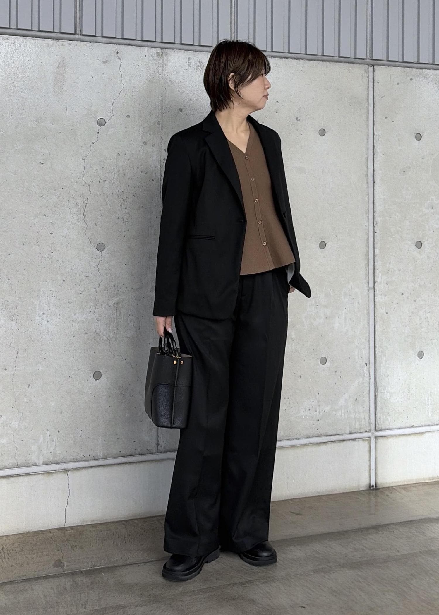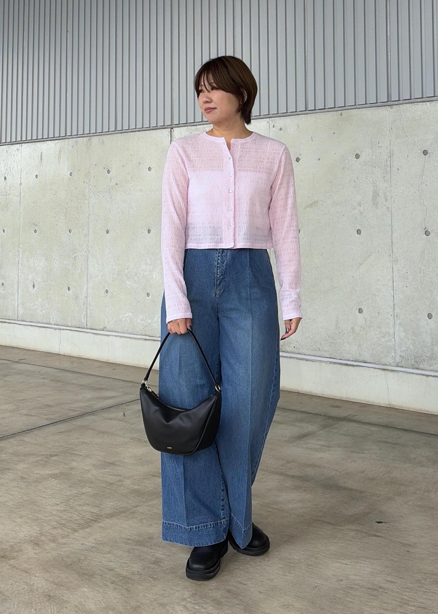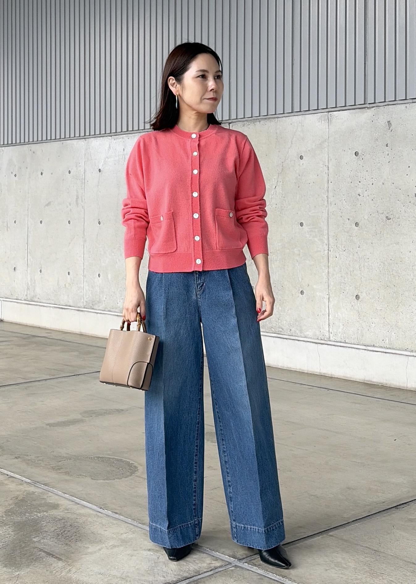 ハイウエストと、まっすぐなストレートシルエットで足長効果。