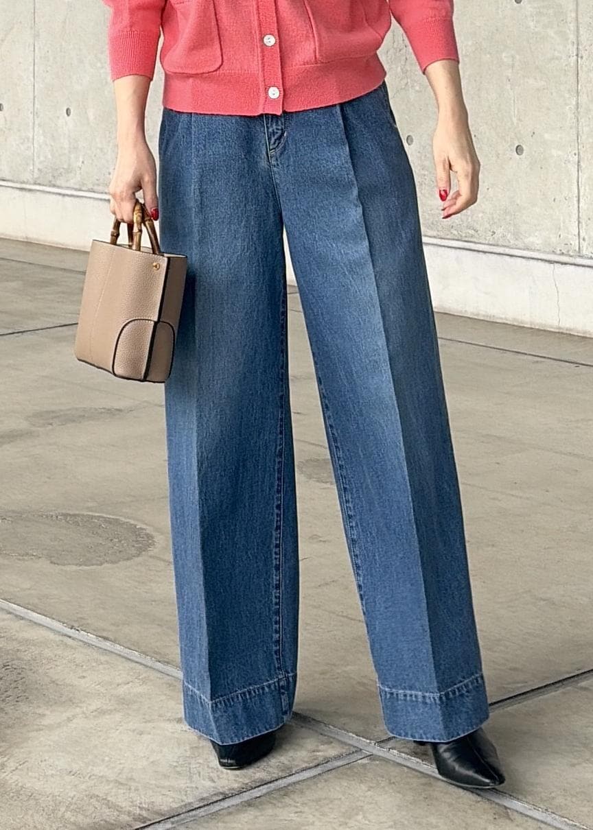 ROPÉテンセルデニムストレートワイドパンツ/イージーケア・セットアップ対応ブルー / 36¥29,700レビュー身長156cm、36サイズ着用。