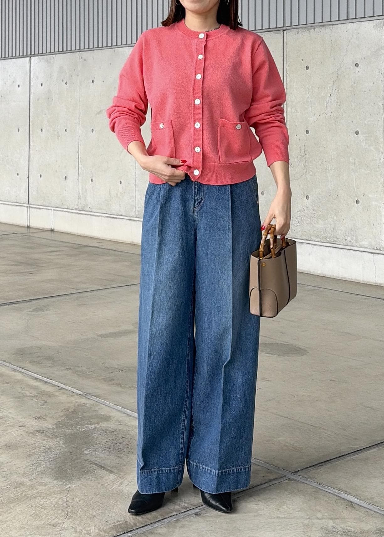NEW!ROPÉウールカシミヤニットカーディガンピンク系 / F¥15,400レビュー身長156cm、Fサイズ着用。