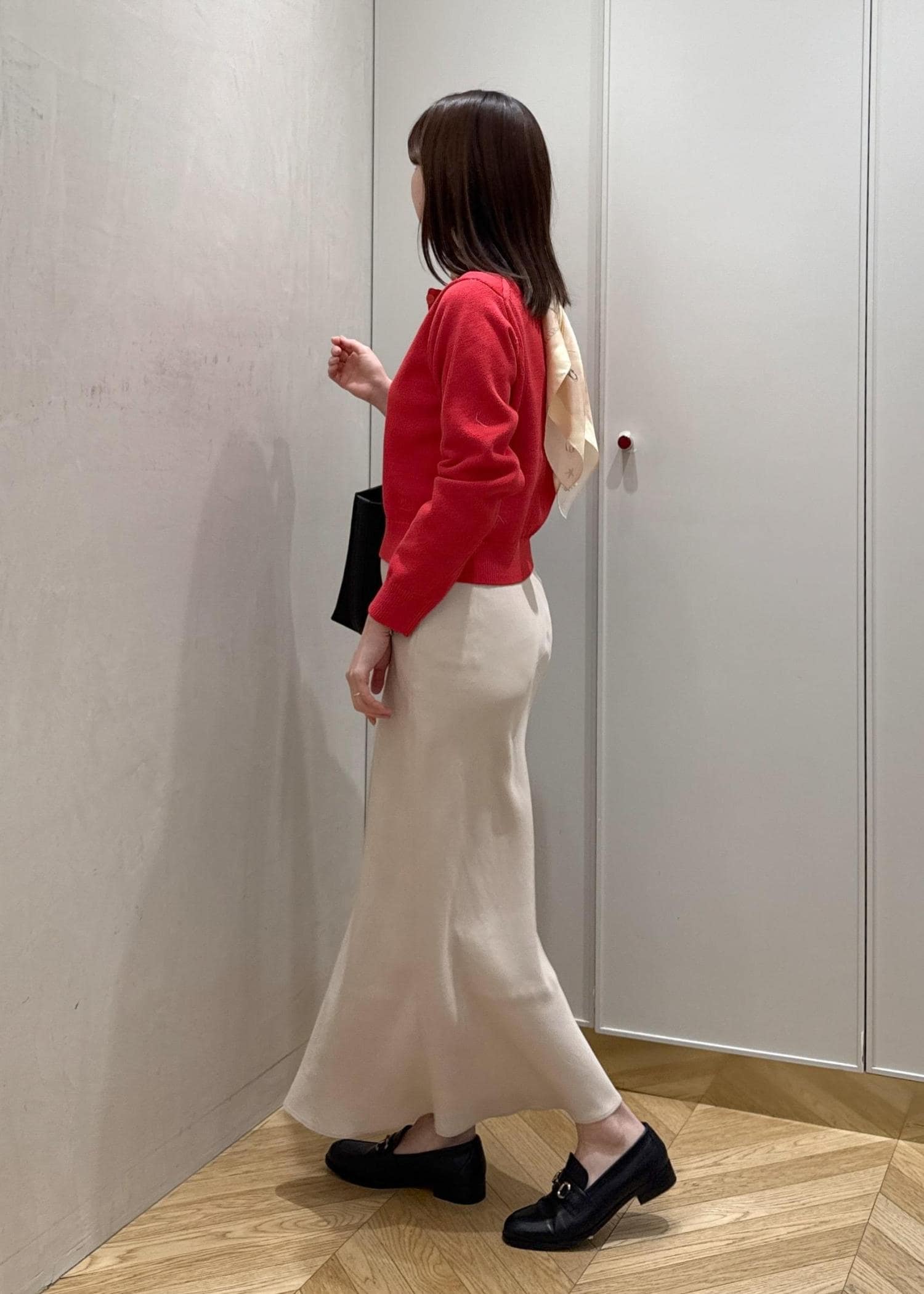レッド×ベージュの春コーデ