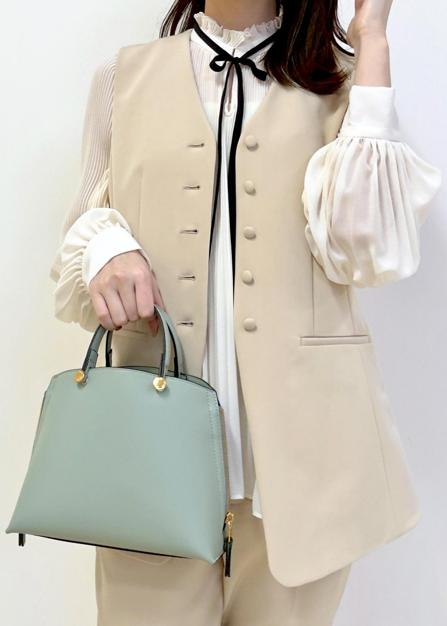 小さめですがマチがしっかりあるため、ミニ財布や250ml程のペットボトル、化粧ポーチ、ハンカチ、コンパクトな折りたたみ傘、充電器等収納可能です。ショルダー付きなので肩掛けの持ち方も◎