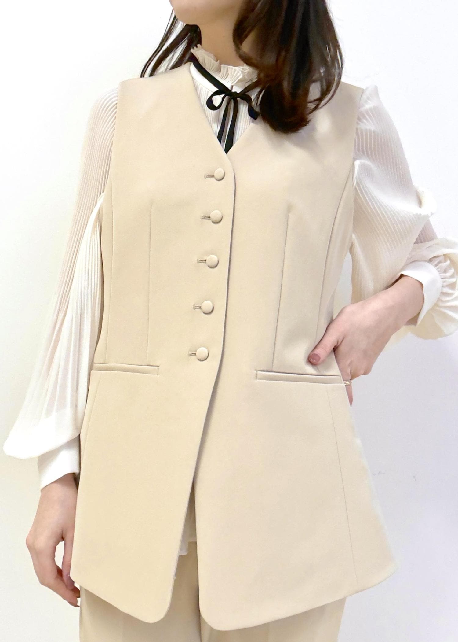 細かなプリーツで上品さを演出してくれます。