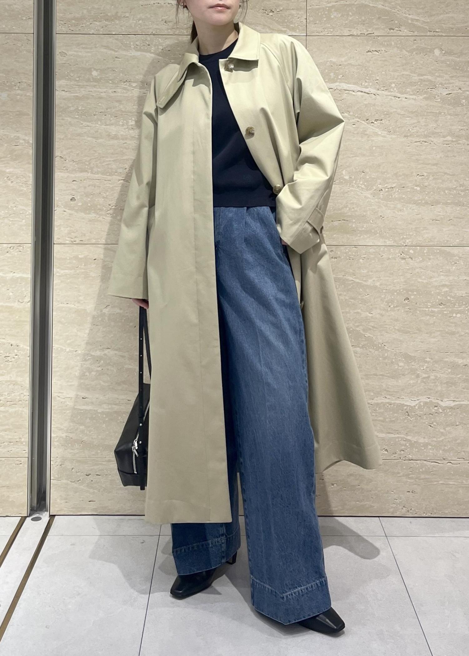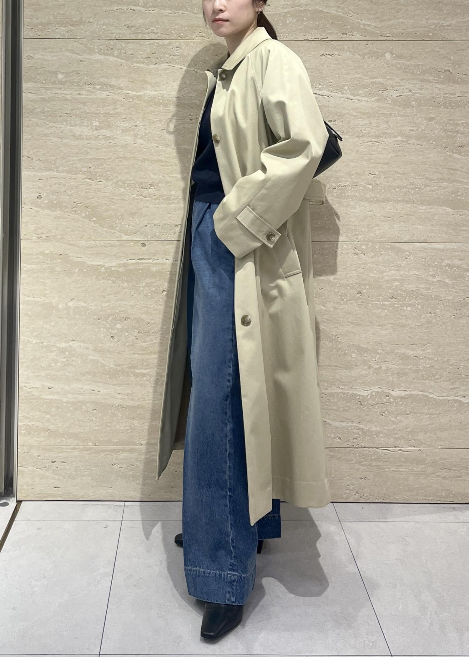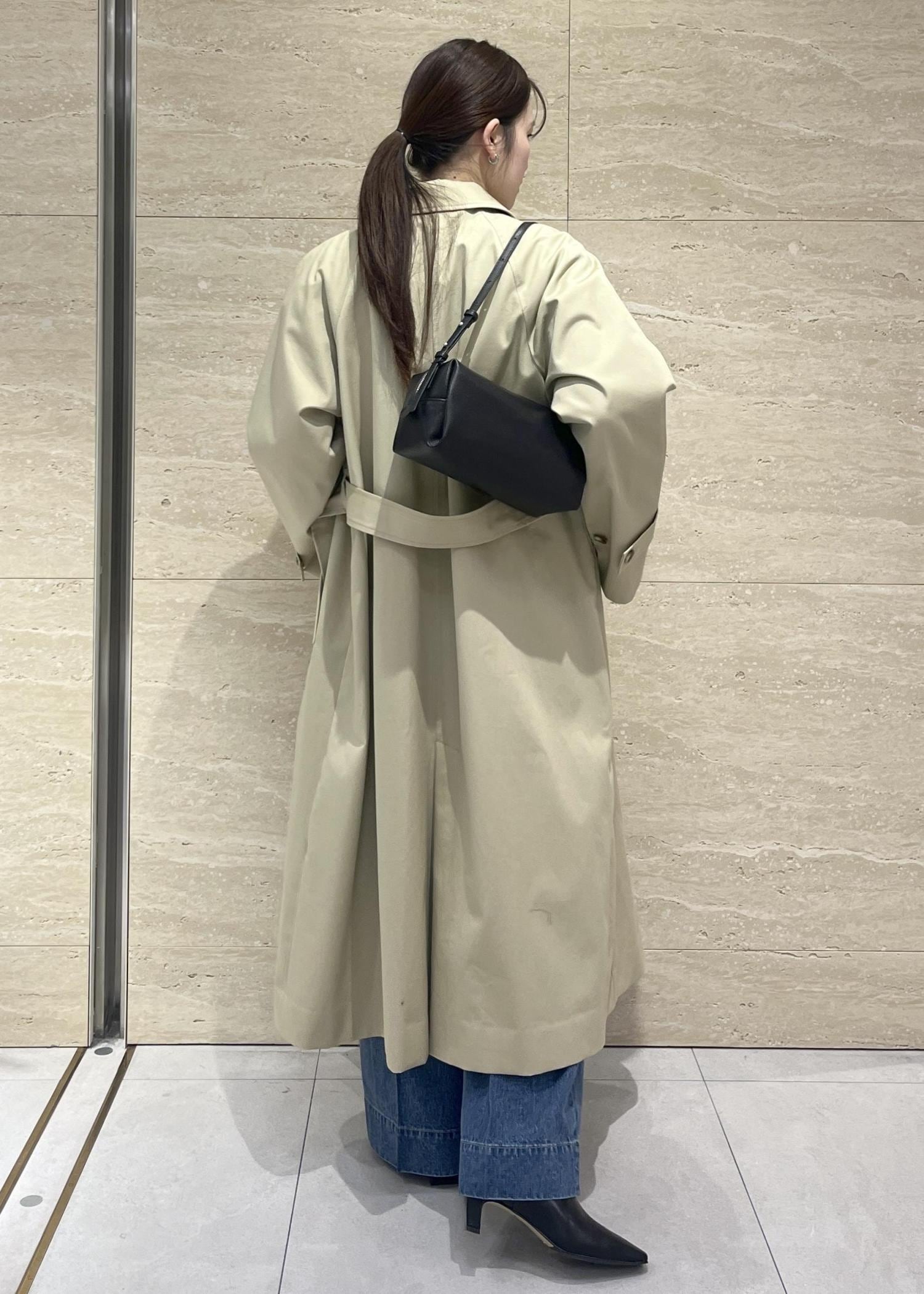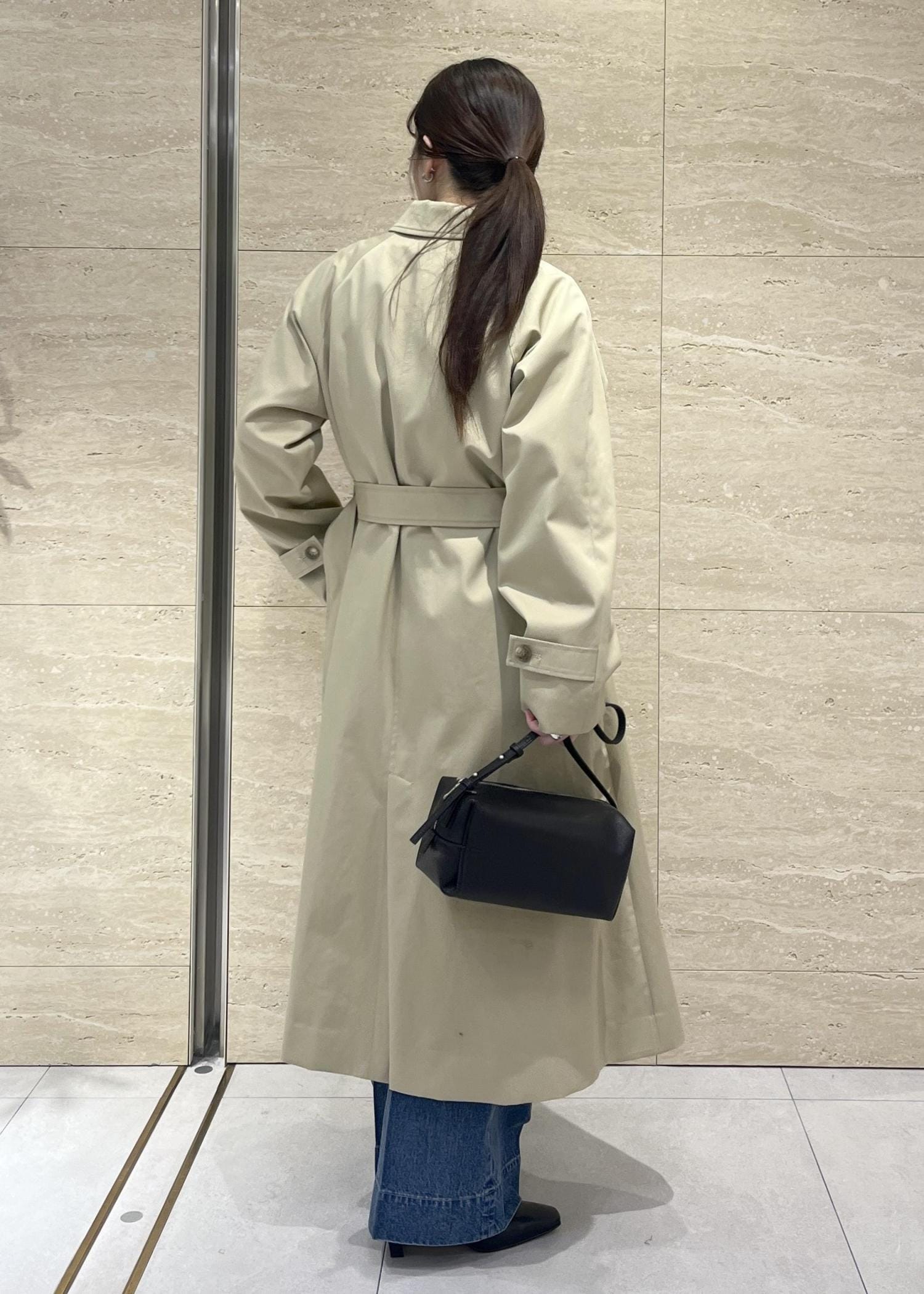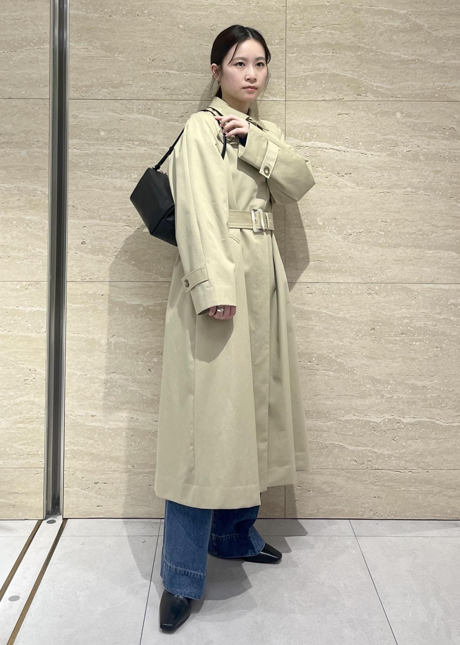 着丈は長めですが、共地のベルトでウエストマークするとメリハリがつくので、低身長の方もバランス良く着ていただけます。 -