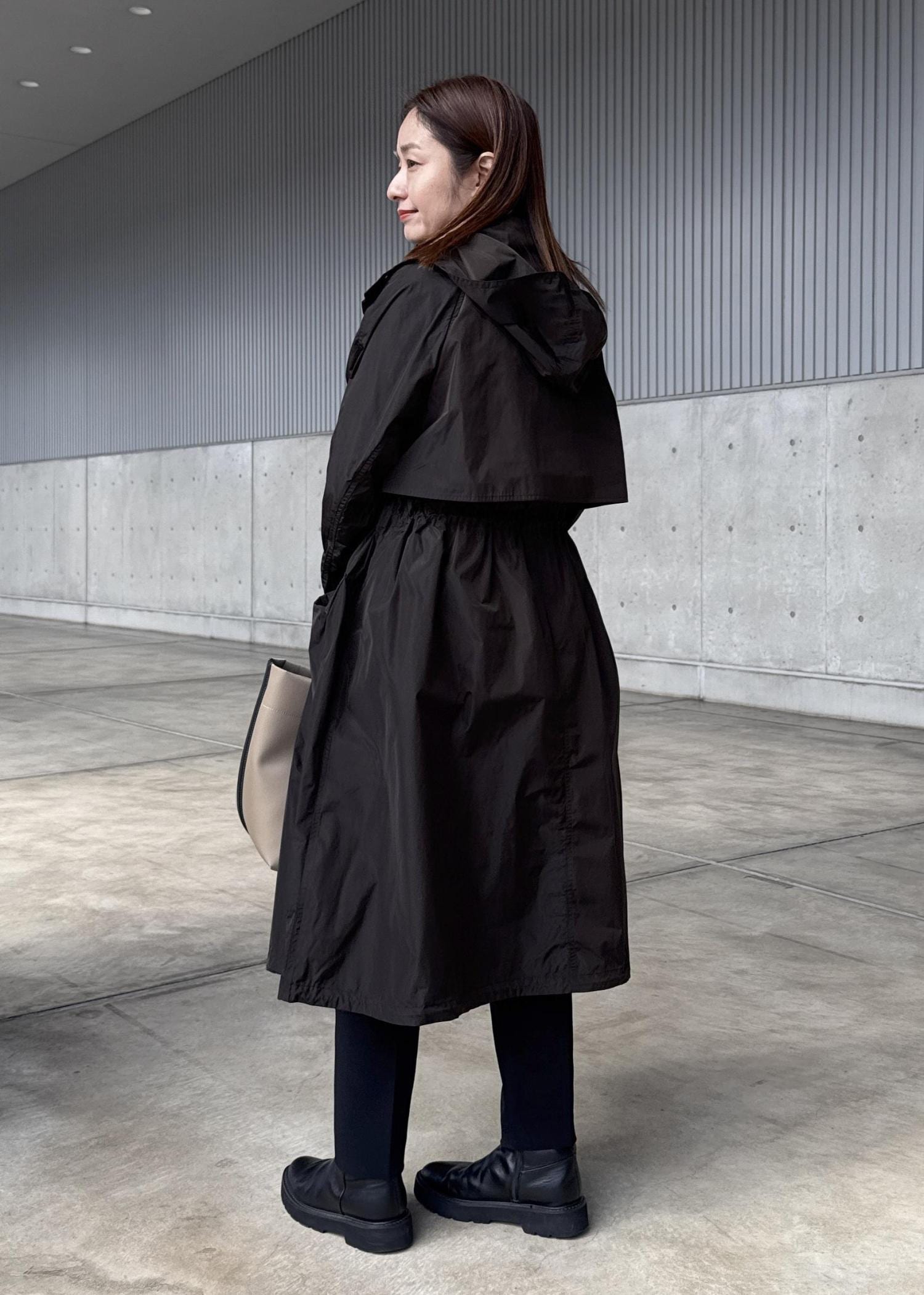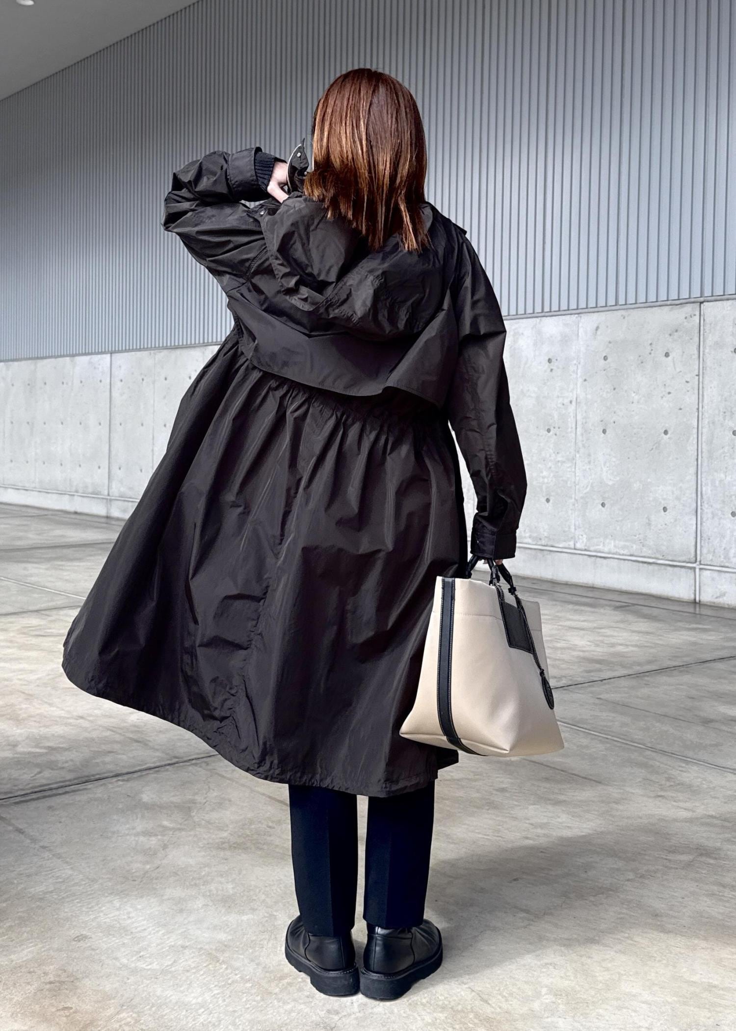 ROPÉ【撥水】タフタフーデッドドロストロング丈コートダークブラウン / F¥69,300レビュー上品な光沢とハリ感のある撥水ナイロンで使い勝手のいいロングコートです。