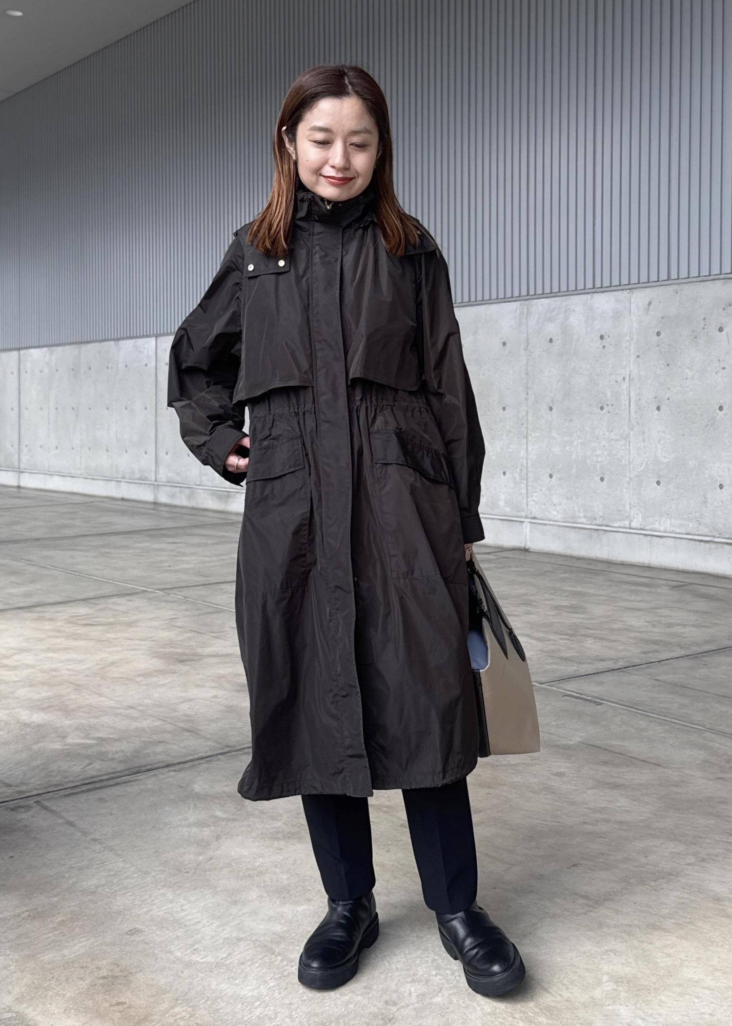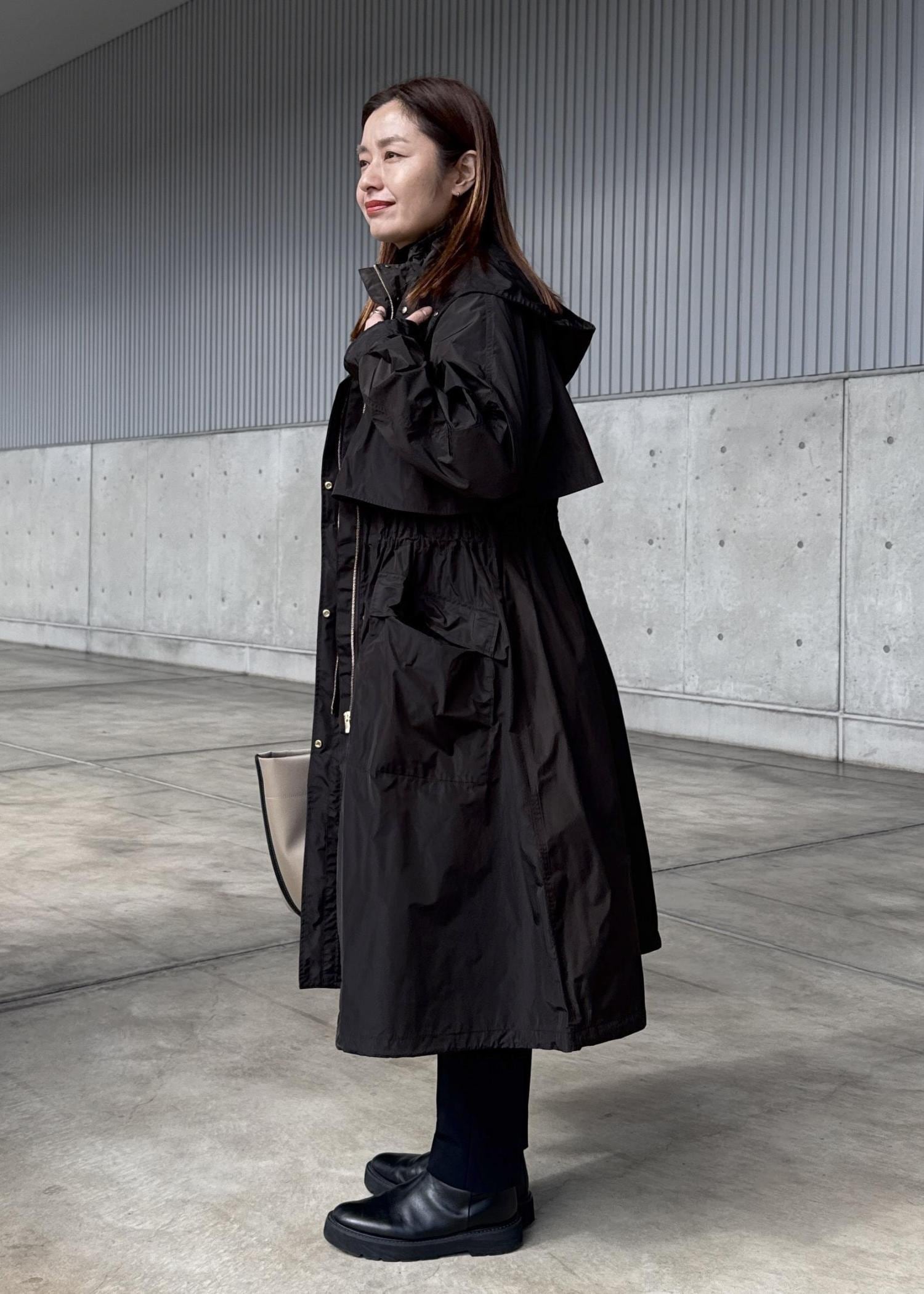 ROPÉ【撥水】タフタフーデッドドロストロング丈コートダークブラウン / F¥69,300レビュー上品な光沢とハリ感のある撥水ナイロンで使い勝手のいいロングコートです。