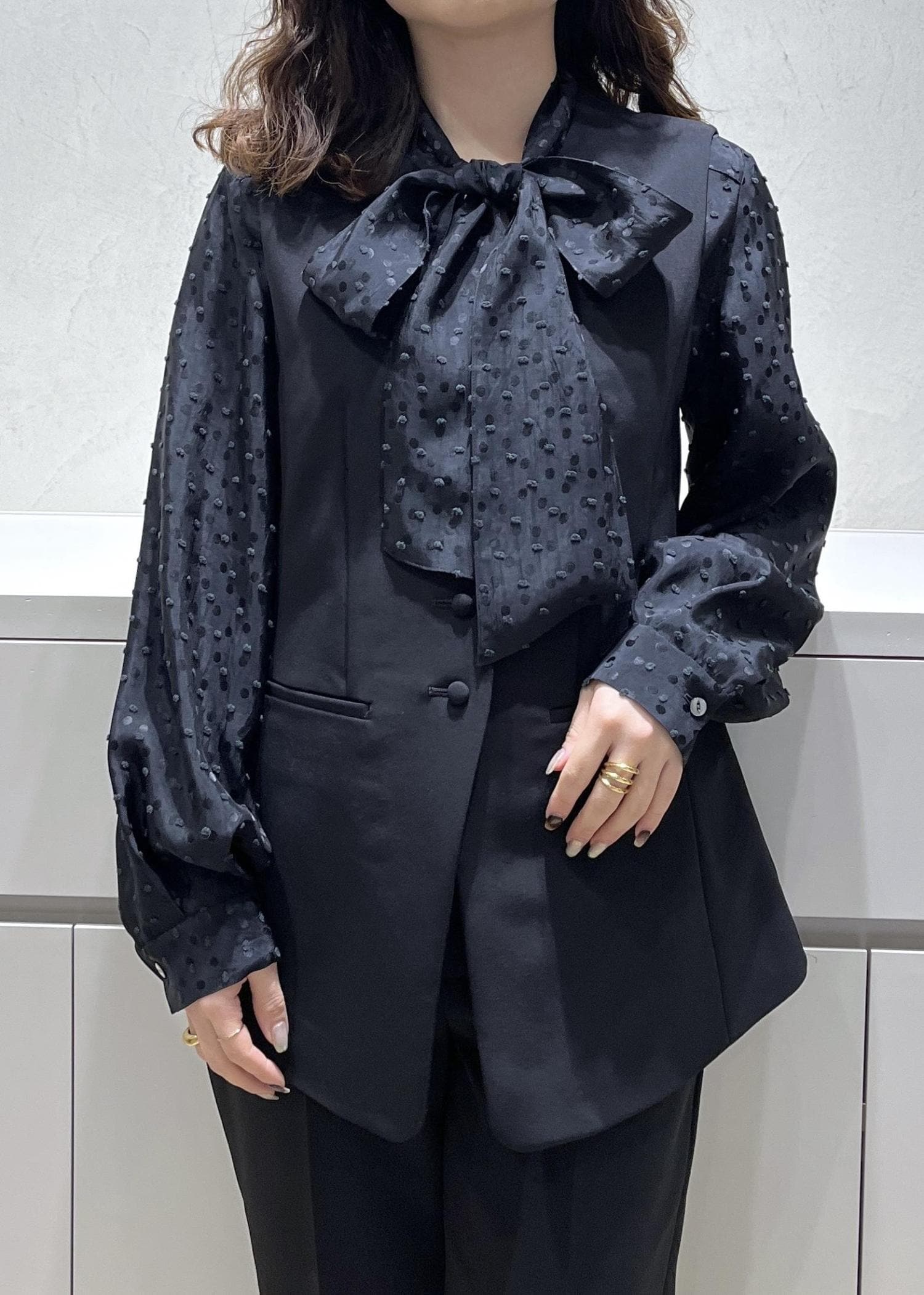 ROPÉ2WAYドットジャガードボウタイブラウス/イージーケアブラック / F¥28,600レビューフリーサイズです。