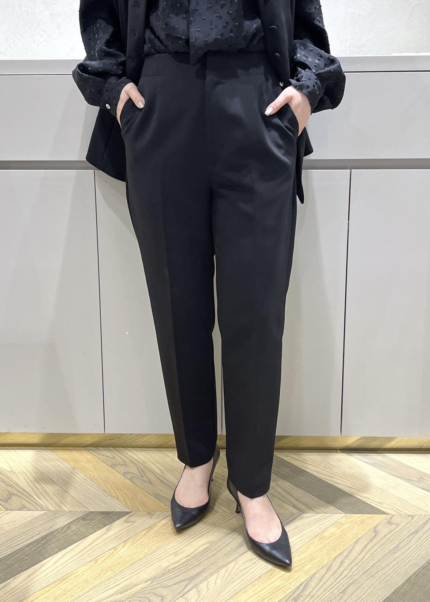 ROPÉダブルクロスストレッチペンシルパンツ/接触冷感・イージーケア・セットアップ対応ブラック / 38¥20,900レビュー38サイズを着用しています。