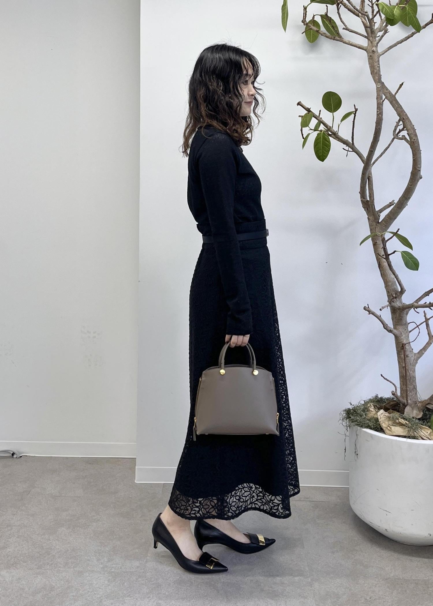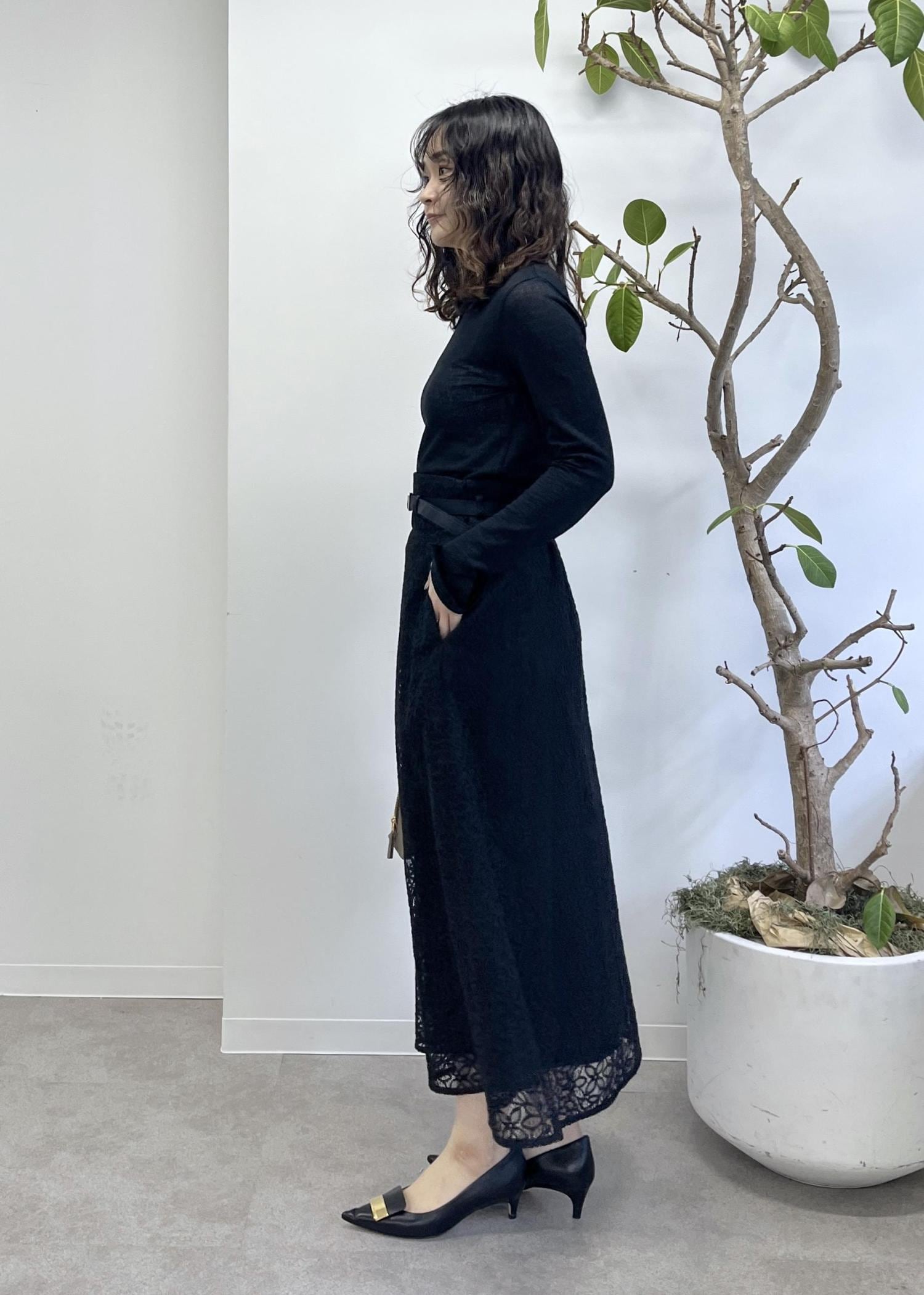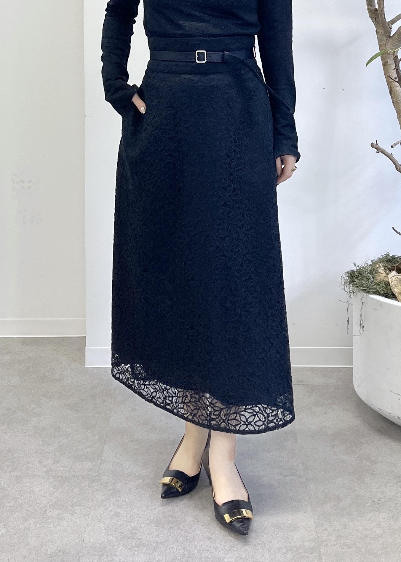 NEW! 予約ROPÉベルト付きセミフレアレーススカートブラック / 38¥30,800レビューサンプルの38サイズを着用しています。
