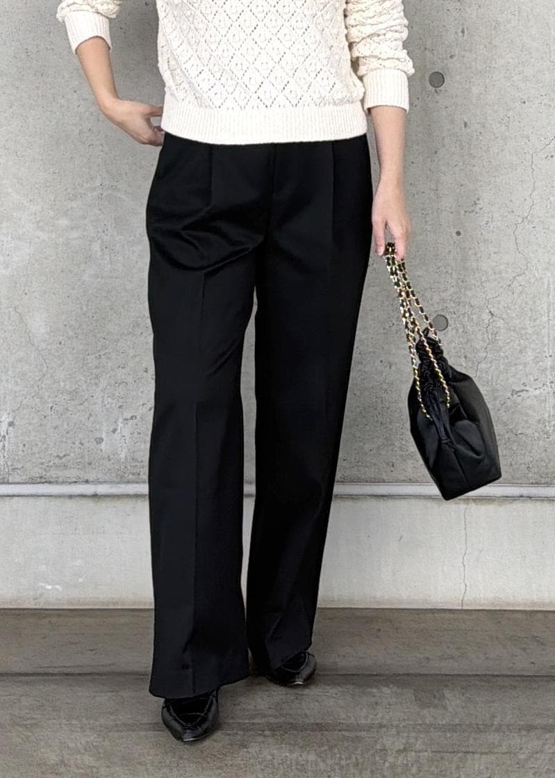 ROPÉトリアセツイル ワンタックイージーワイドパンツ(デニムライク)/イージーケア・セットアップ対応ブラック / 38¥27,500レビュー身長161㎝で普段38サイズを着用しています。