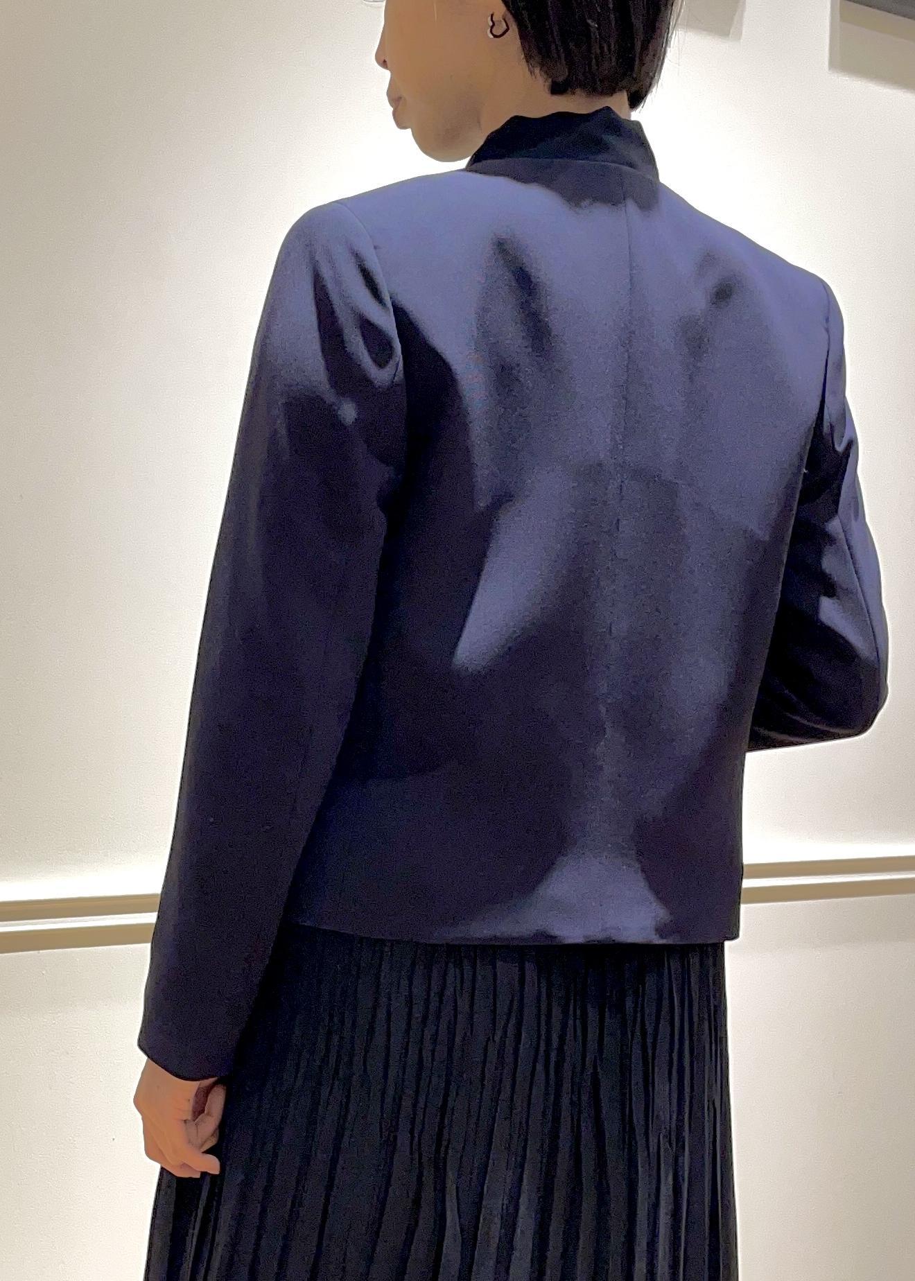 首元の襟のシルエットがとても綺麗で、上品なノーカラーです。