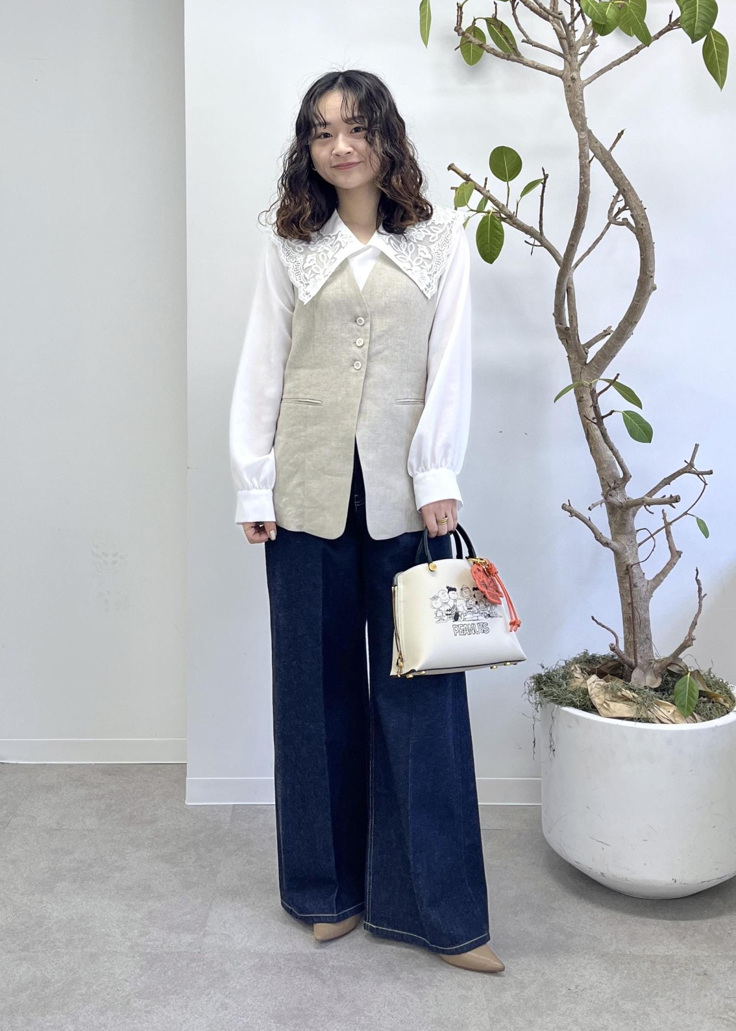 バッグはPEANUTSコラボを合わせ