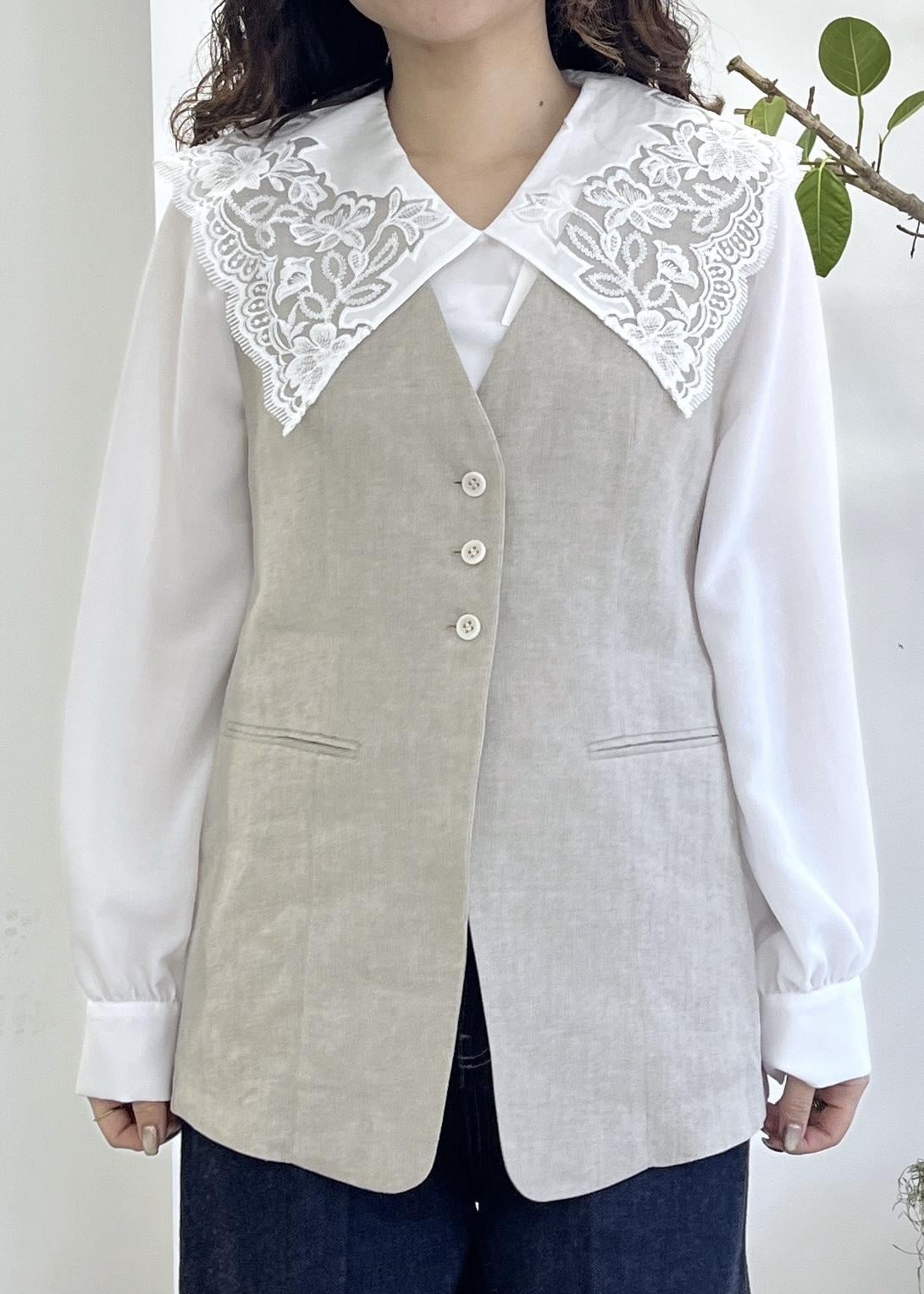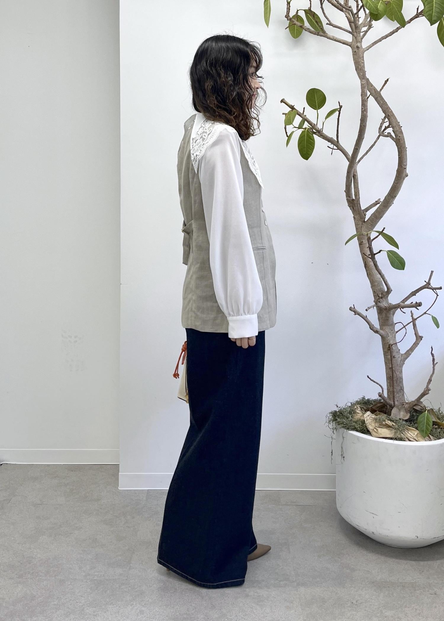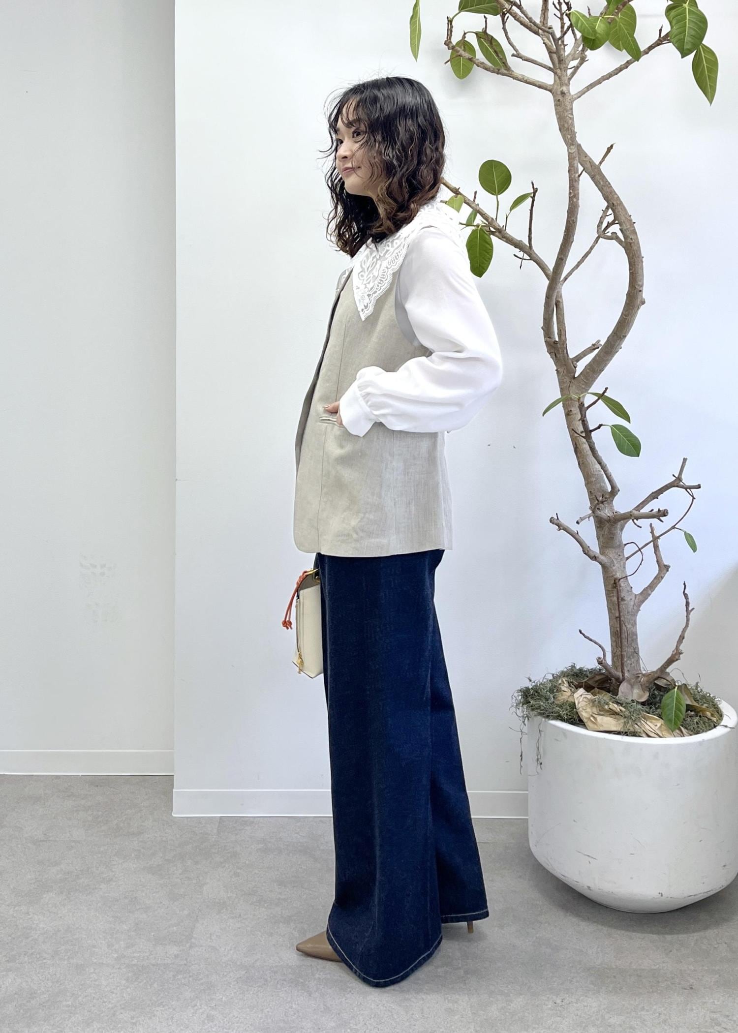 ジレをプラスすると襟が際立ち、グッと華やかになります◎