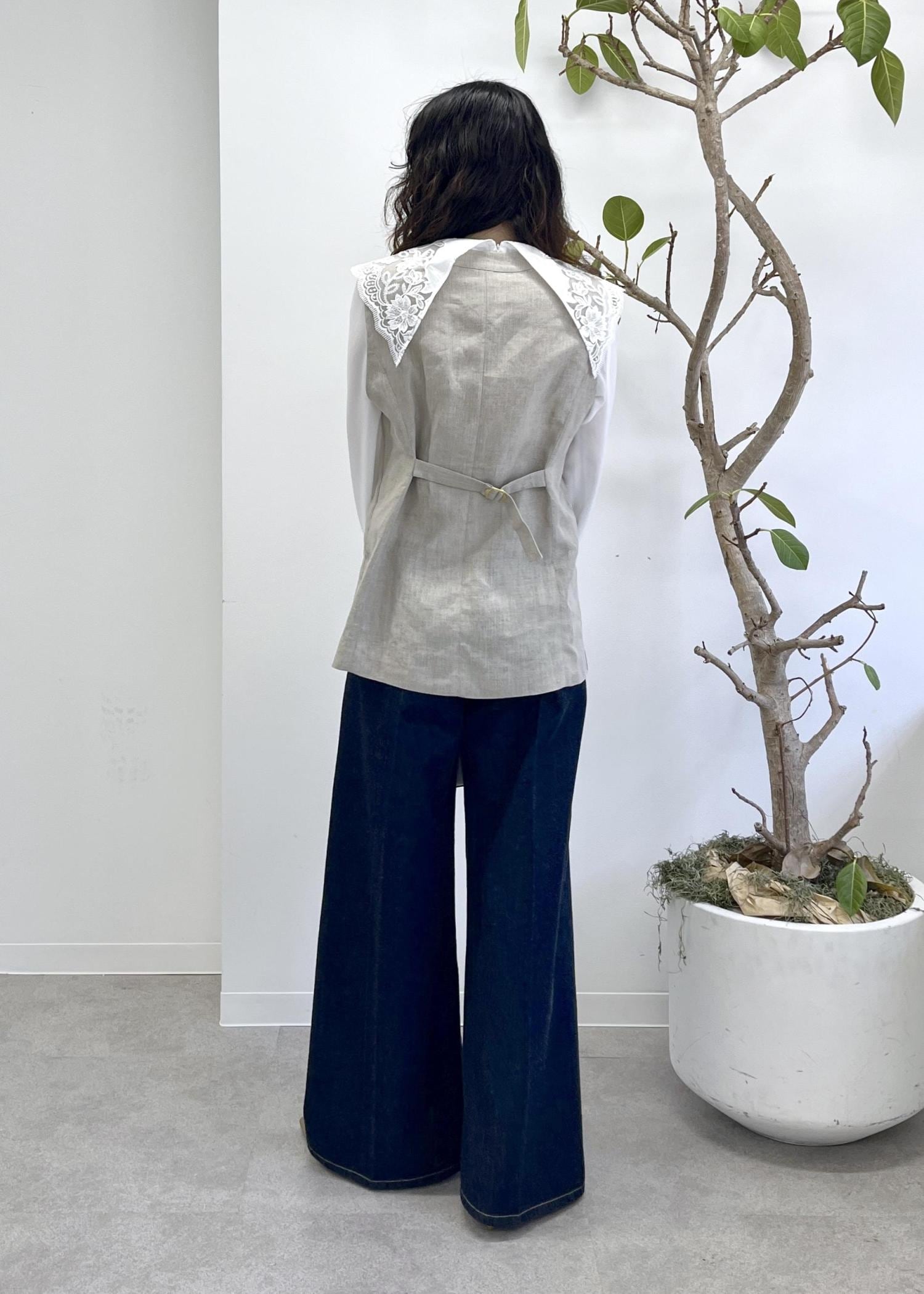 とても軽いリネン素材。きちんと感のあるシルエットながら、リネンの風合いがカジュアルにも馴染むジレです。 -
