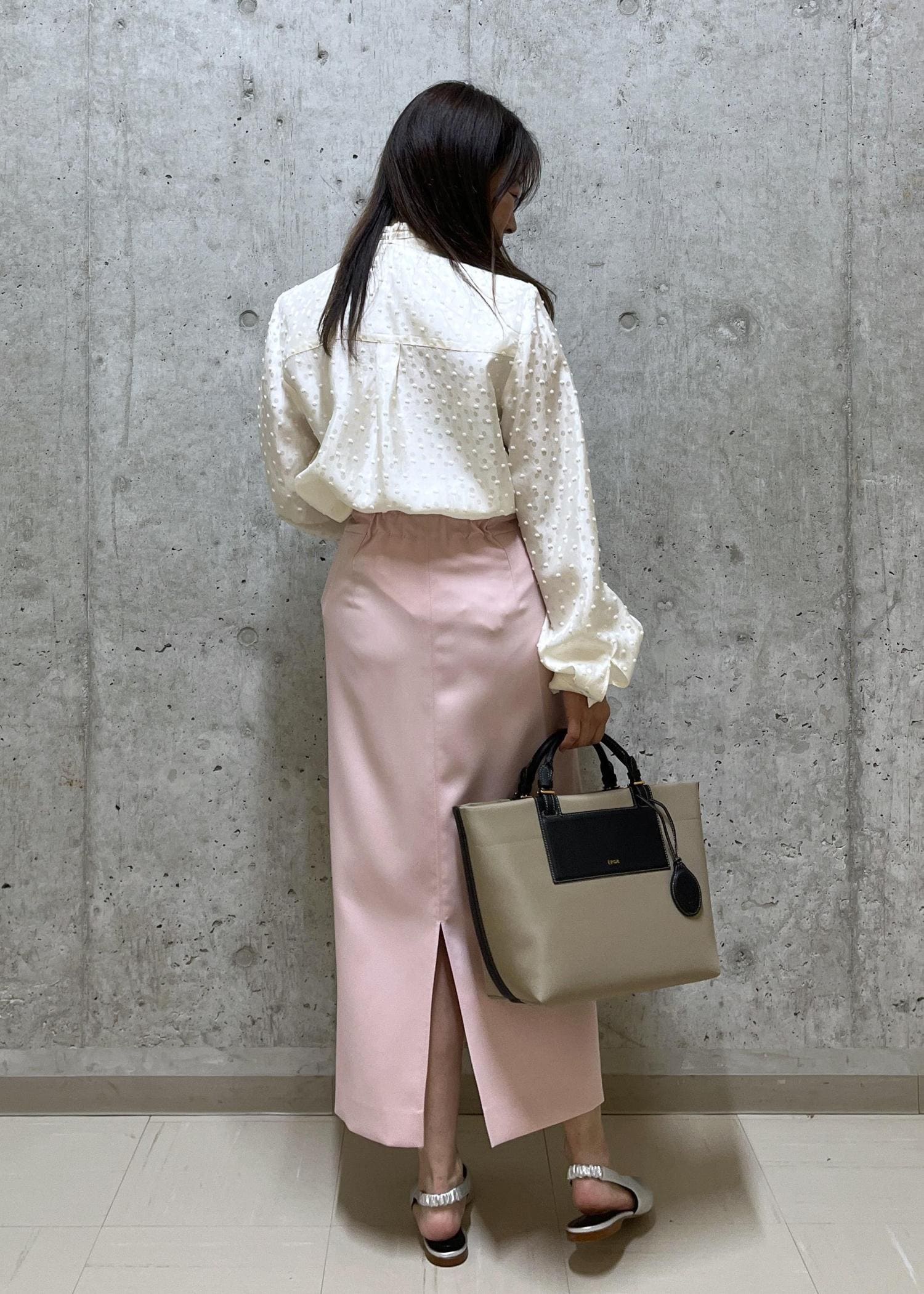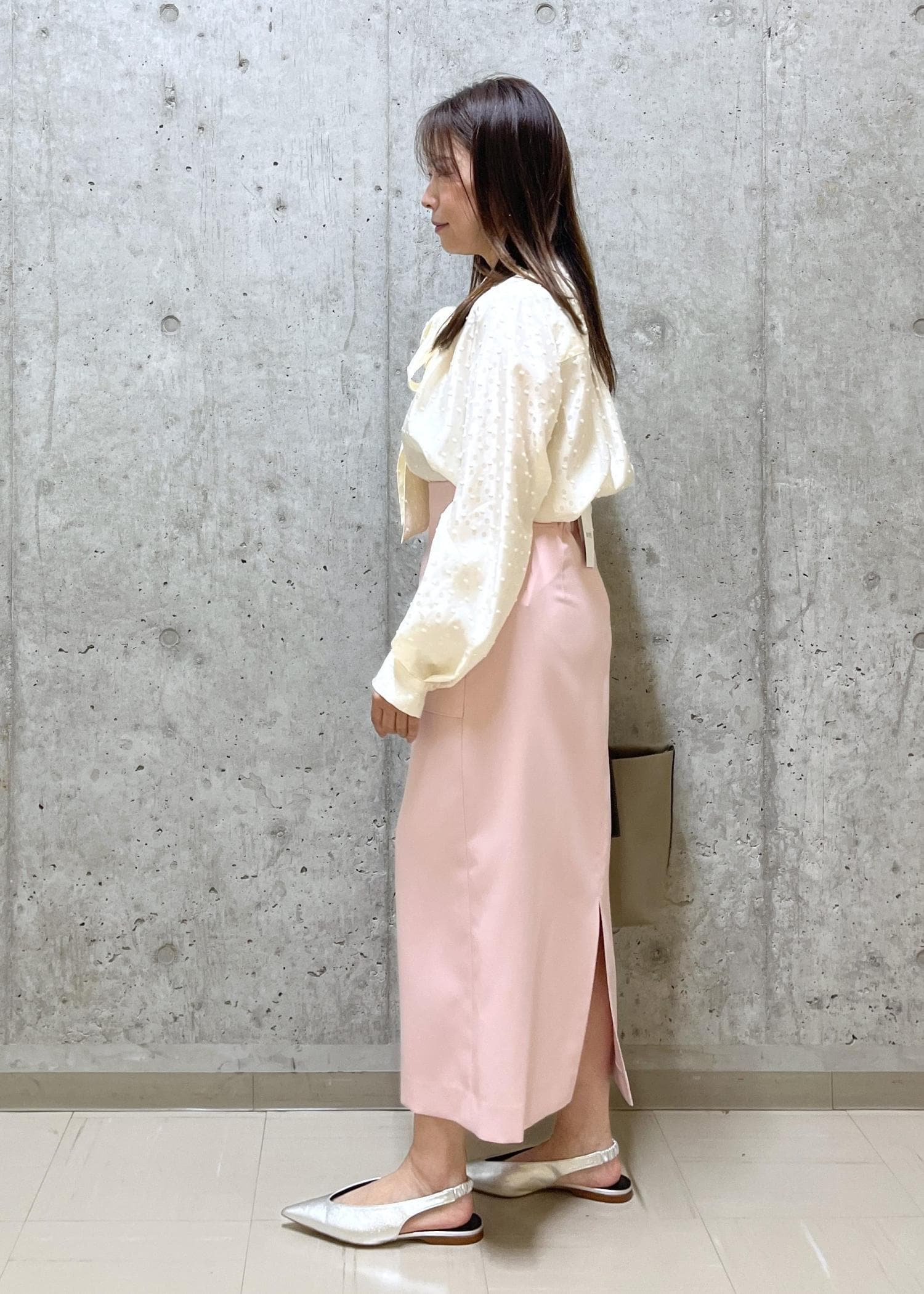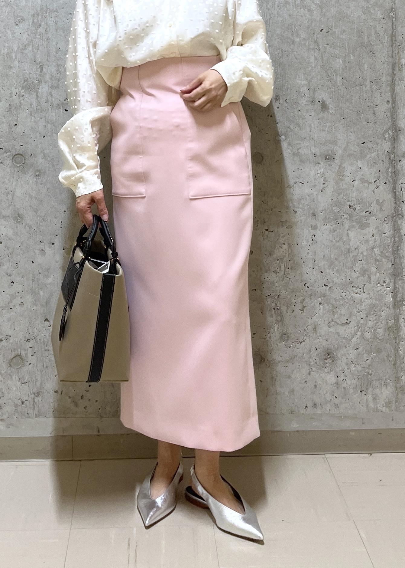 ロペ定番のポケ付きタイトスカートを合わせて通勤スタイルも可愛い雰囲気にしました。