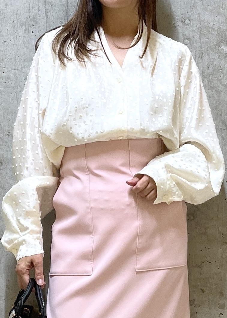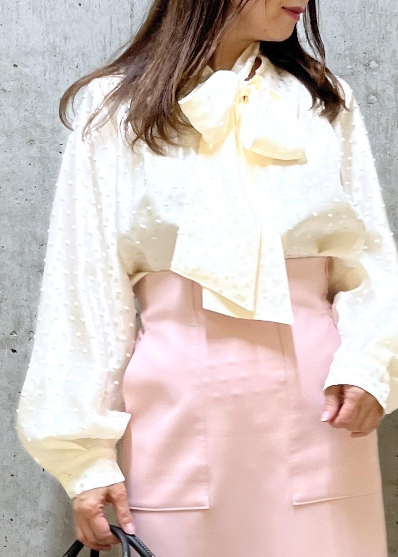 ROPÉ2WAYドットジャガードボウタイブラウス/イージーケアオフホワイト / F¥28,600レビュー立体感のあるドット柄とボリュームのあるリボンと袖が可愛いブラウスです。