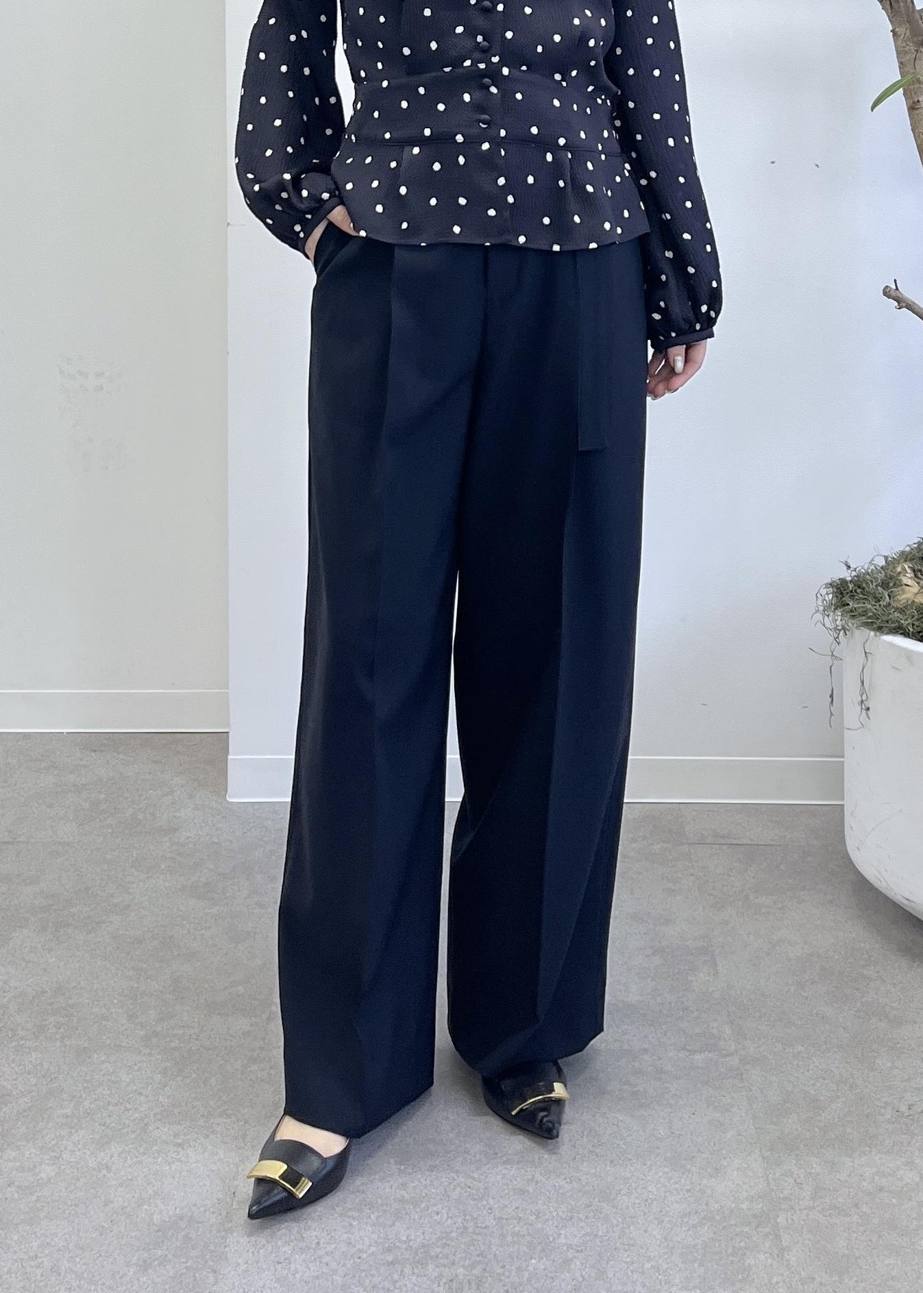 ワンタックでヒップ周りは拾わず、落ち感のある生地なのでスッキリ見えます。足が長く見える美シルエットです♪