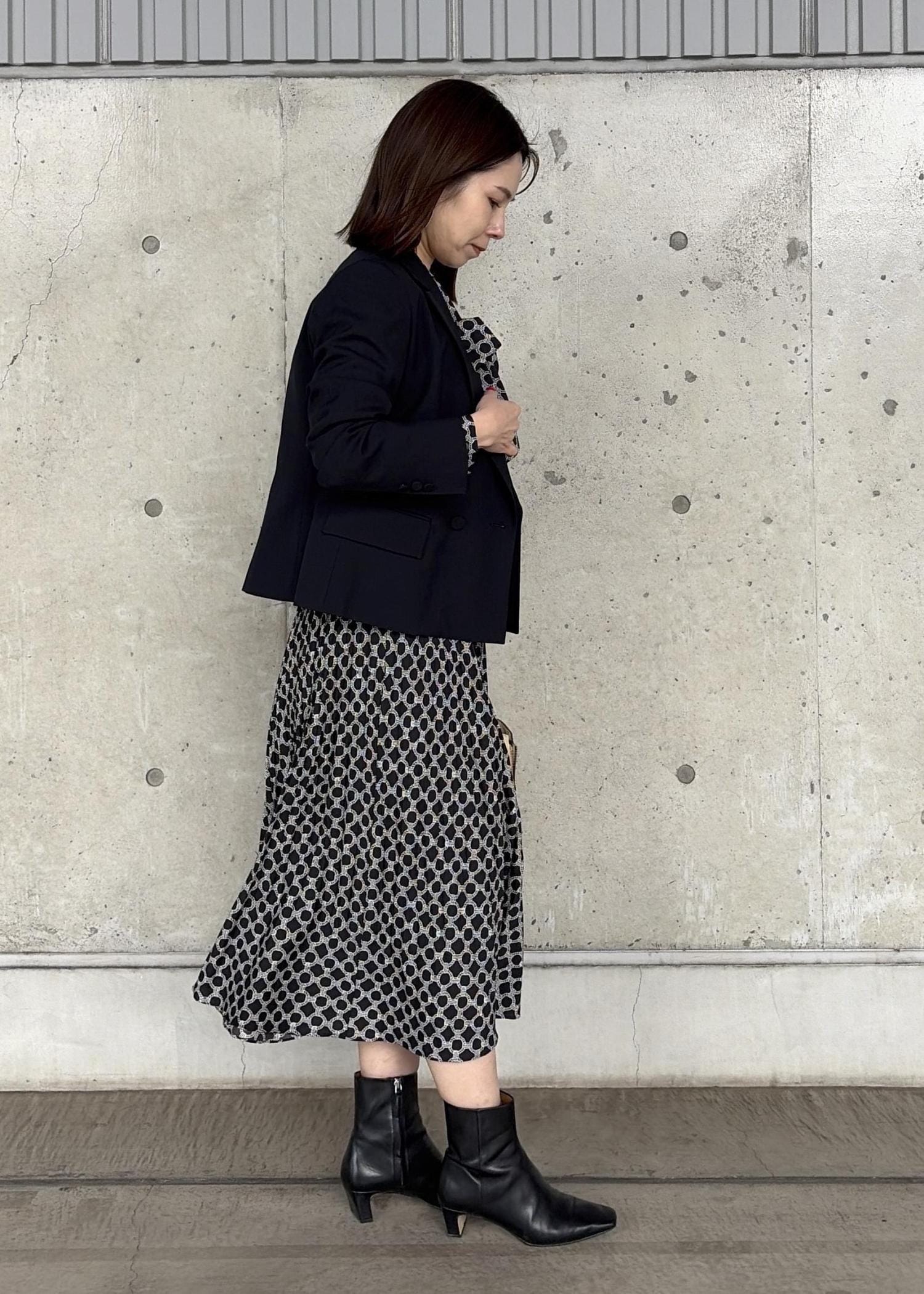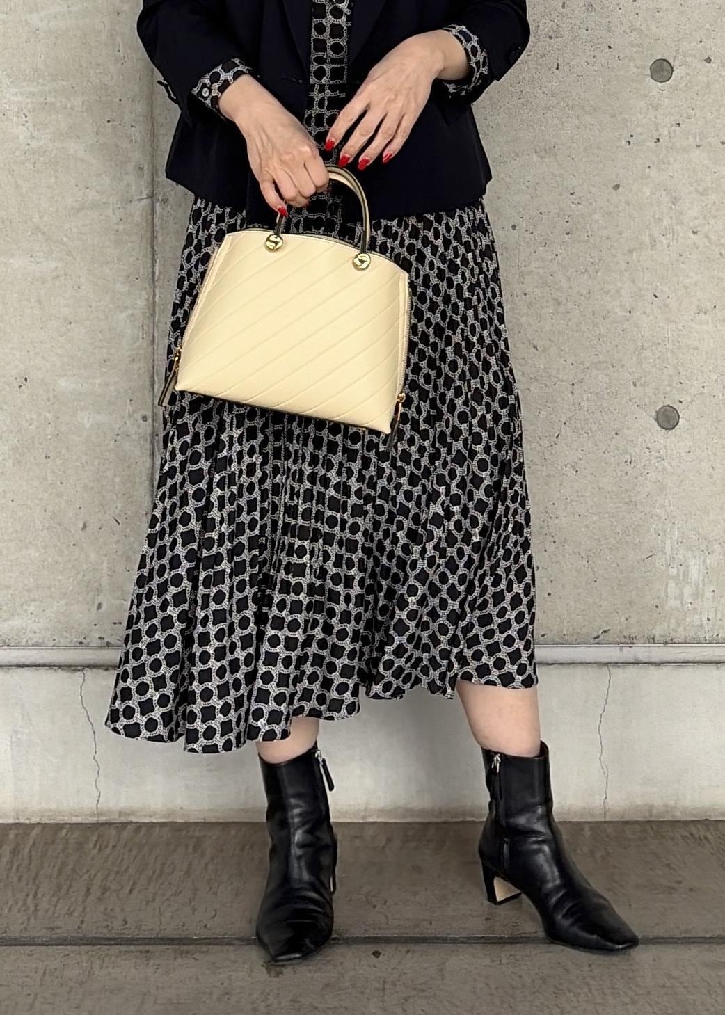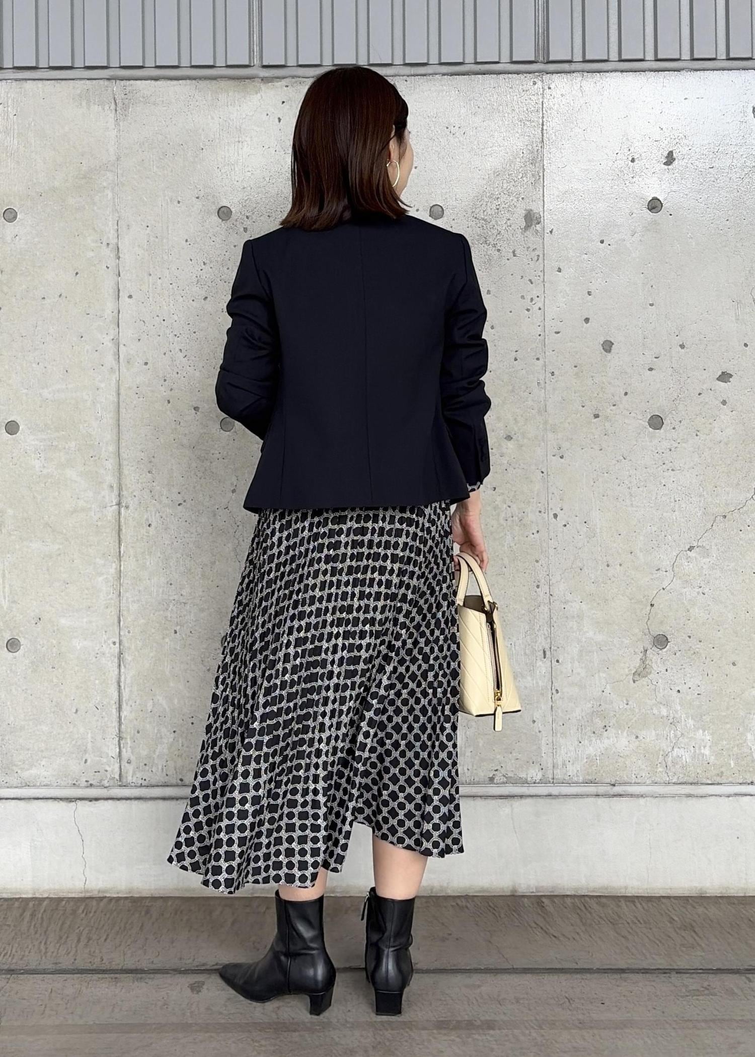シンプルなシルエットに華やかさをプラスしたランダムプリーツと柄デザインは、体のラインを拾いにくくすっきり見せてくれます。 -