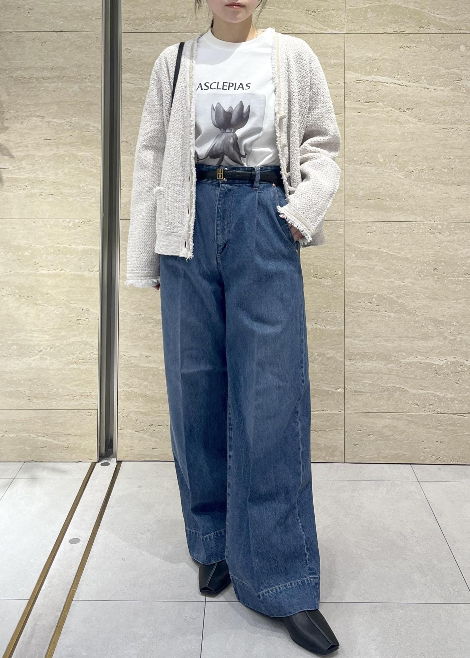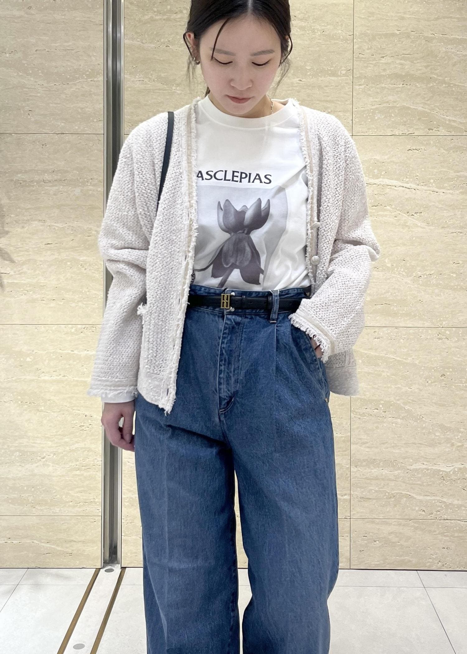 ツイードカーディガンで、上品さと抜け感のあるスタイリングにしました!