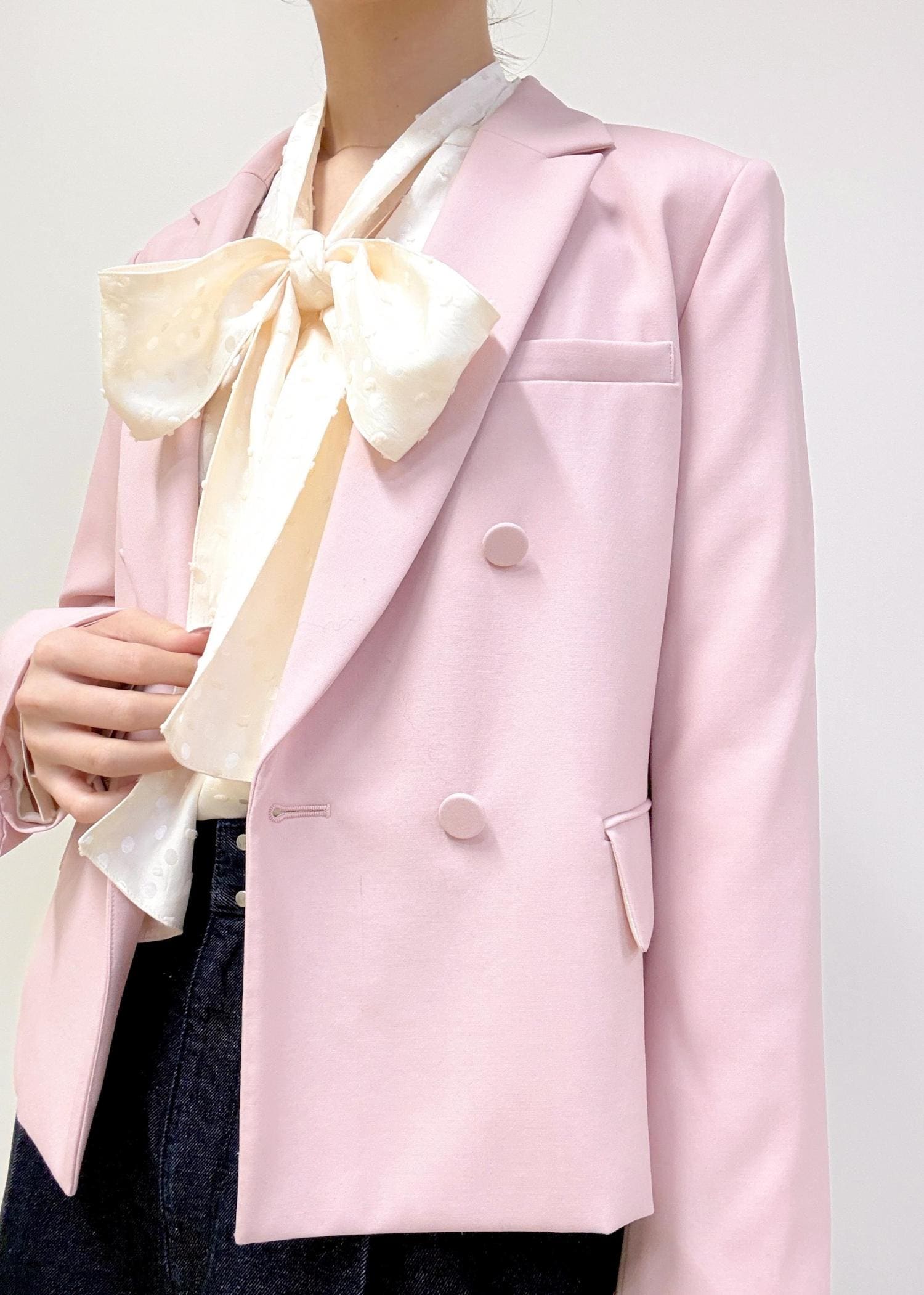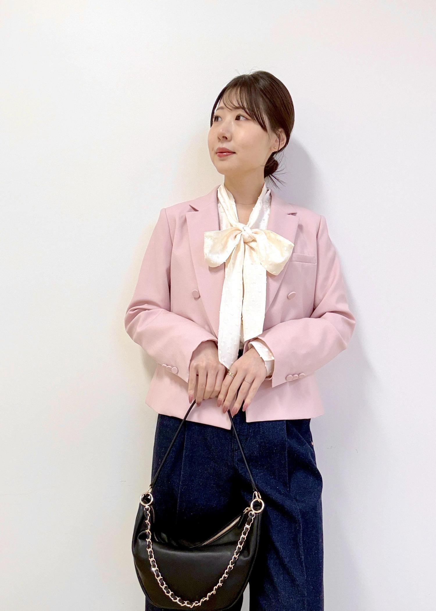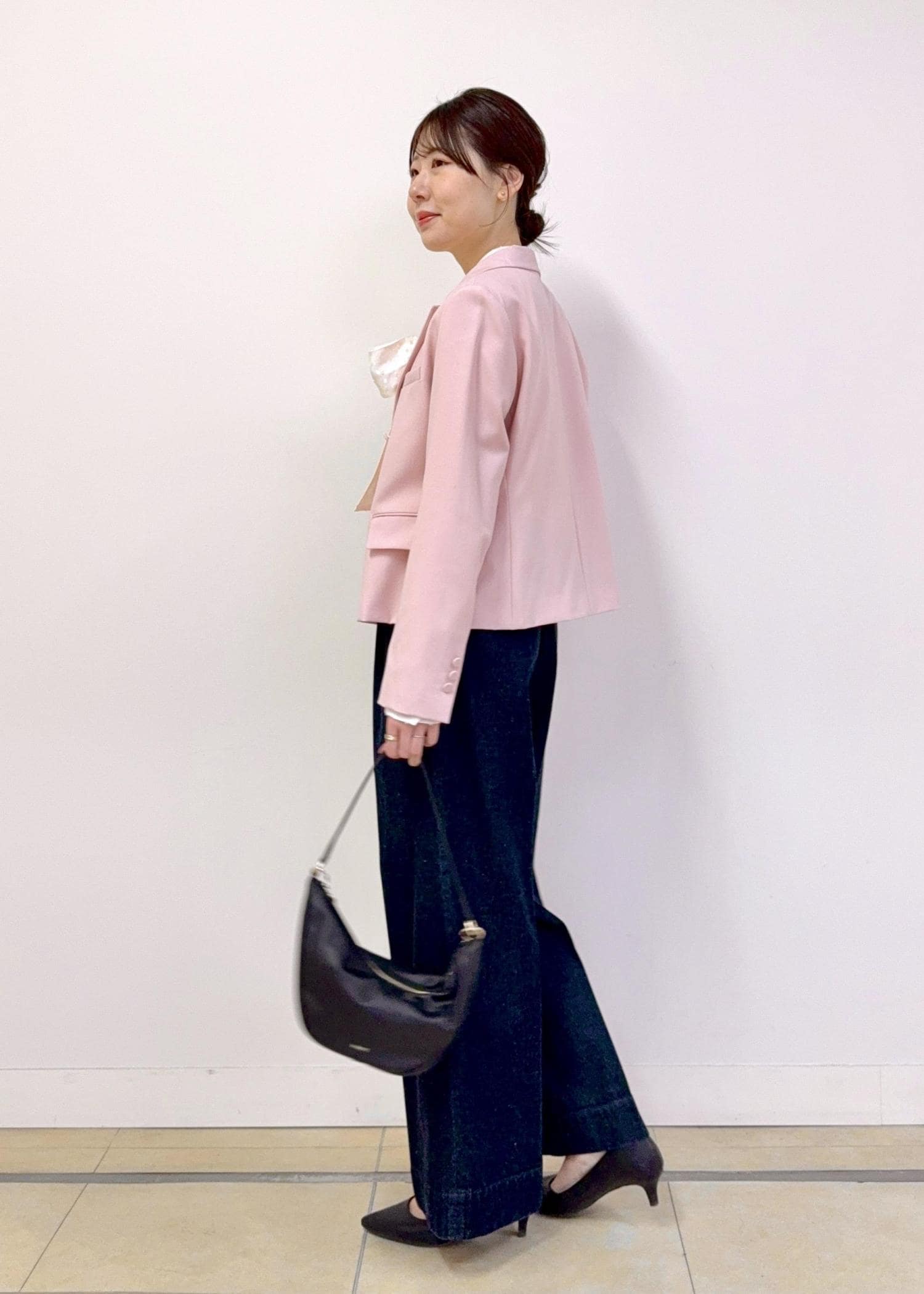 フェミニン好きな方でも着やすい短丈のジャケットと