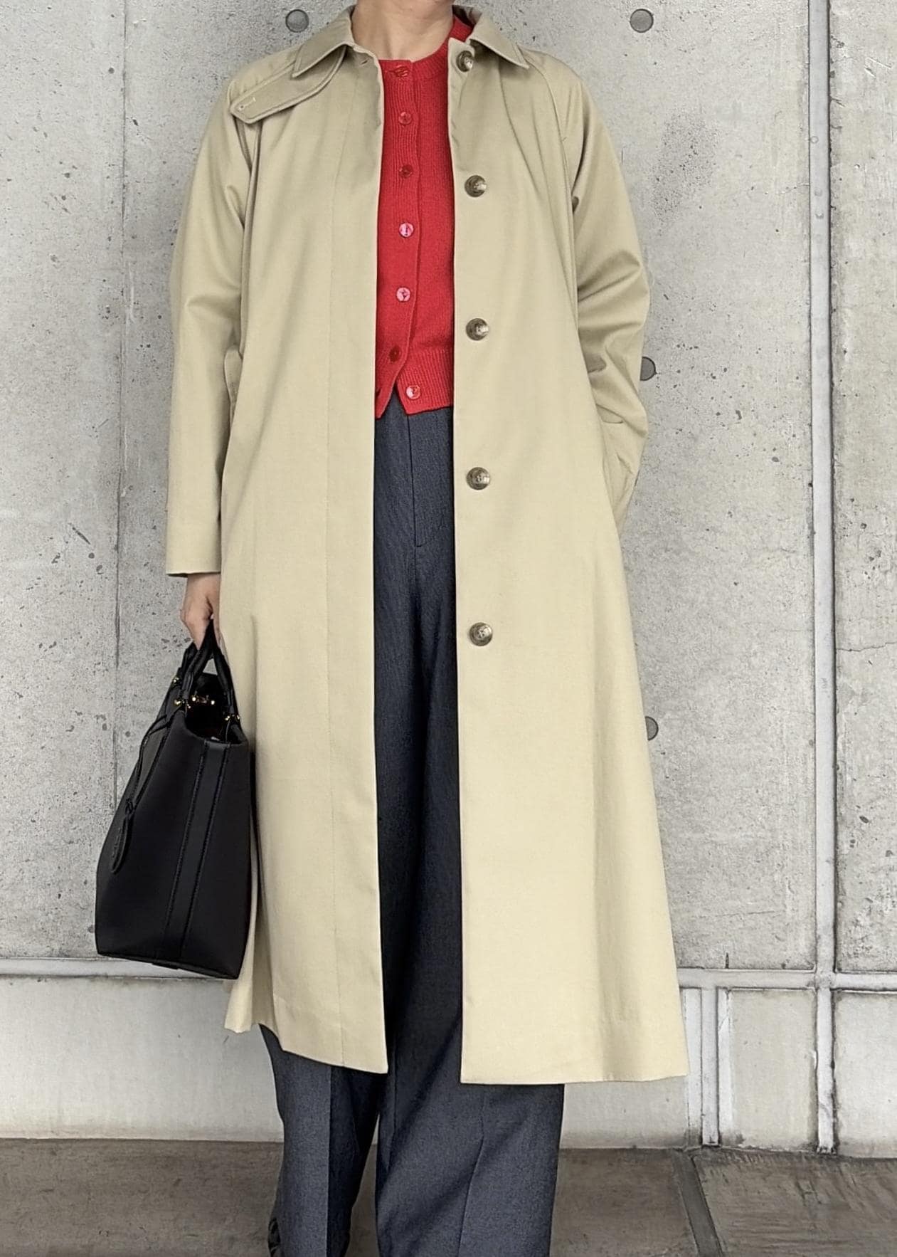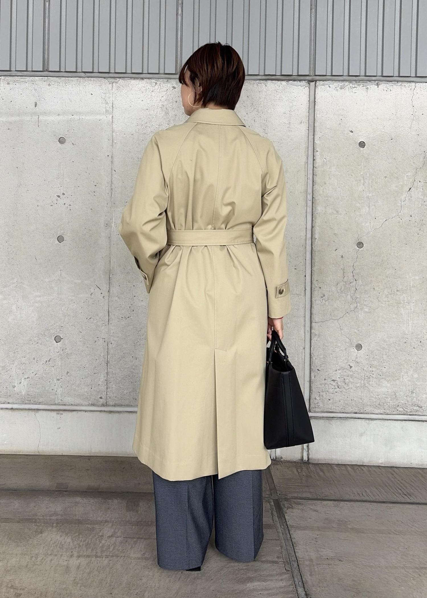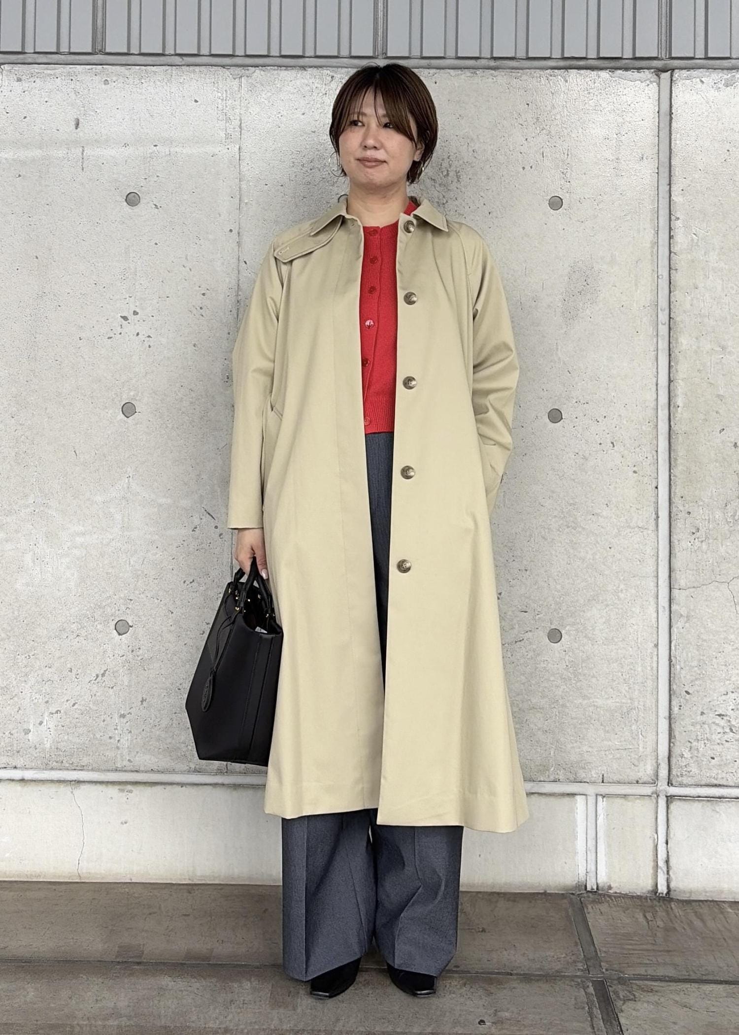 全体的にゆとりがあり、少しオーバーサイズのステンカラーコートです。