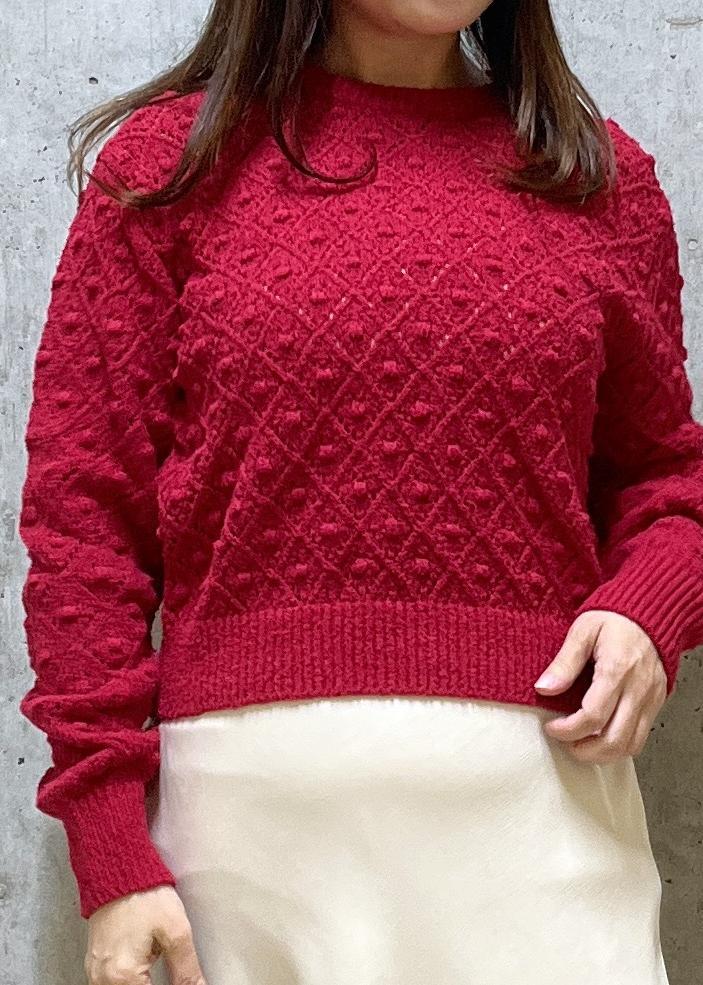 ROPÉダイヤ柄ポップコーン編みニット/イージーケアレッド / F¥16,500レビュー透かし編みのニットなのでインナーは必須になります。