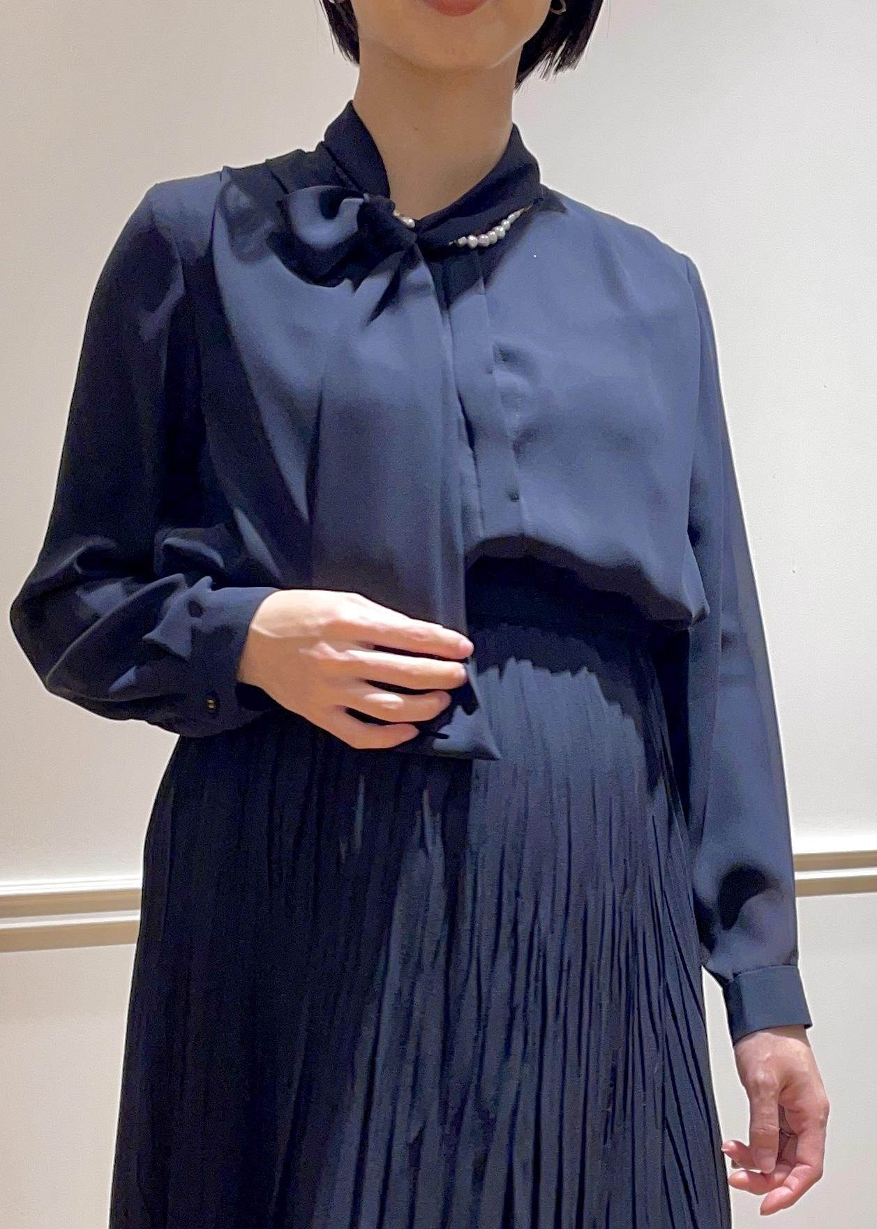 ROPÉジョーゼットシフォンプリーツワンピース/26SSネイビー / 38¥49,500レビューボウタイとランダムなプリーツが上品なシフォンワンピース。