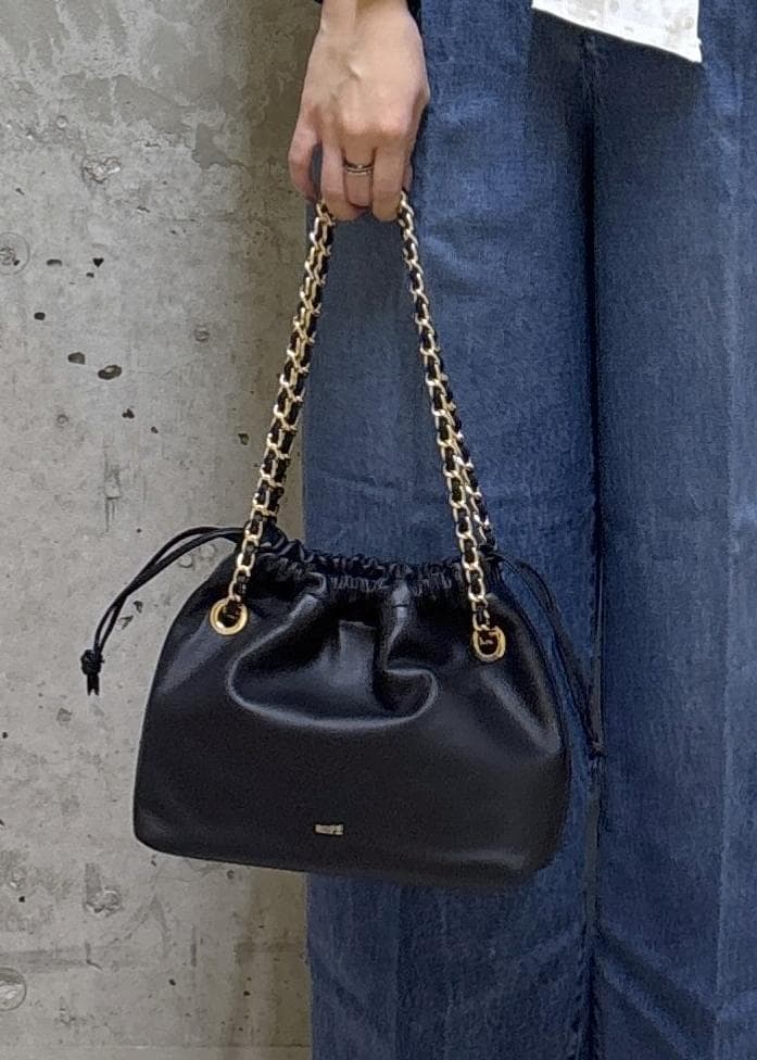片方に伸ばすことでワンショルダーでも持てます。チェーンショルダーは取り外し出来ません。