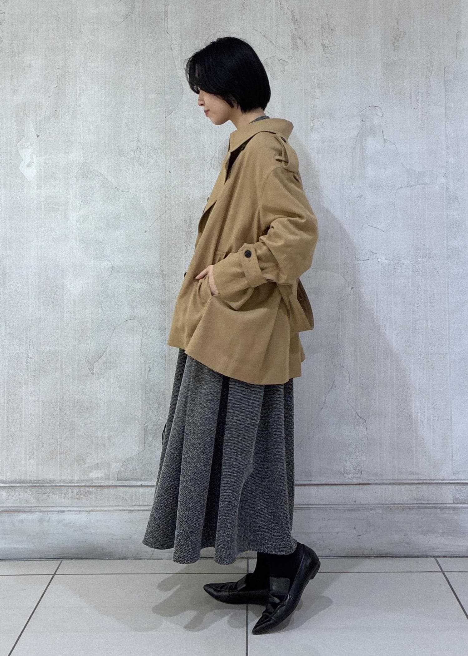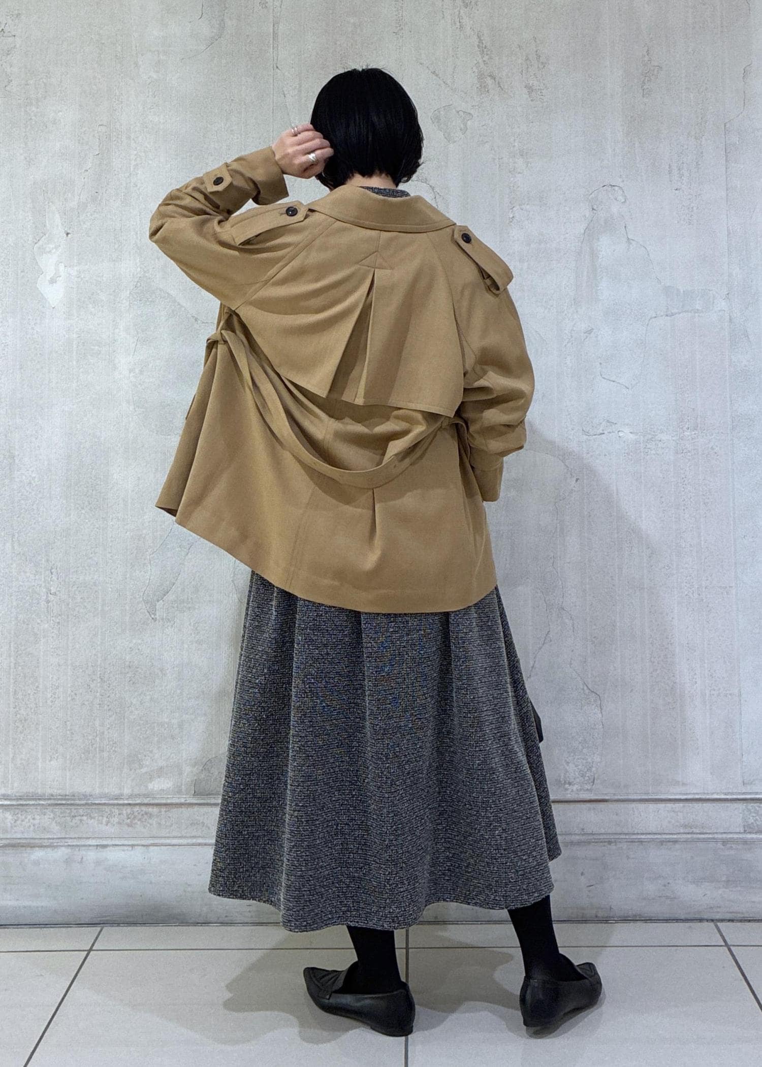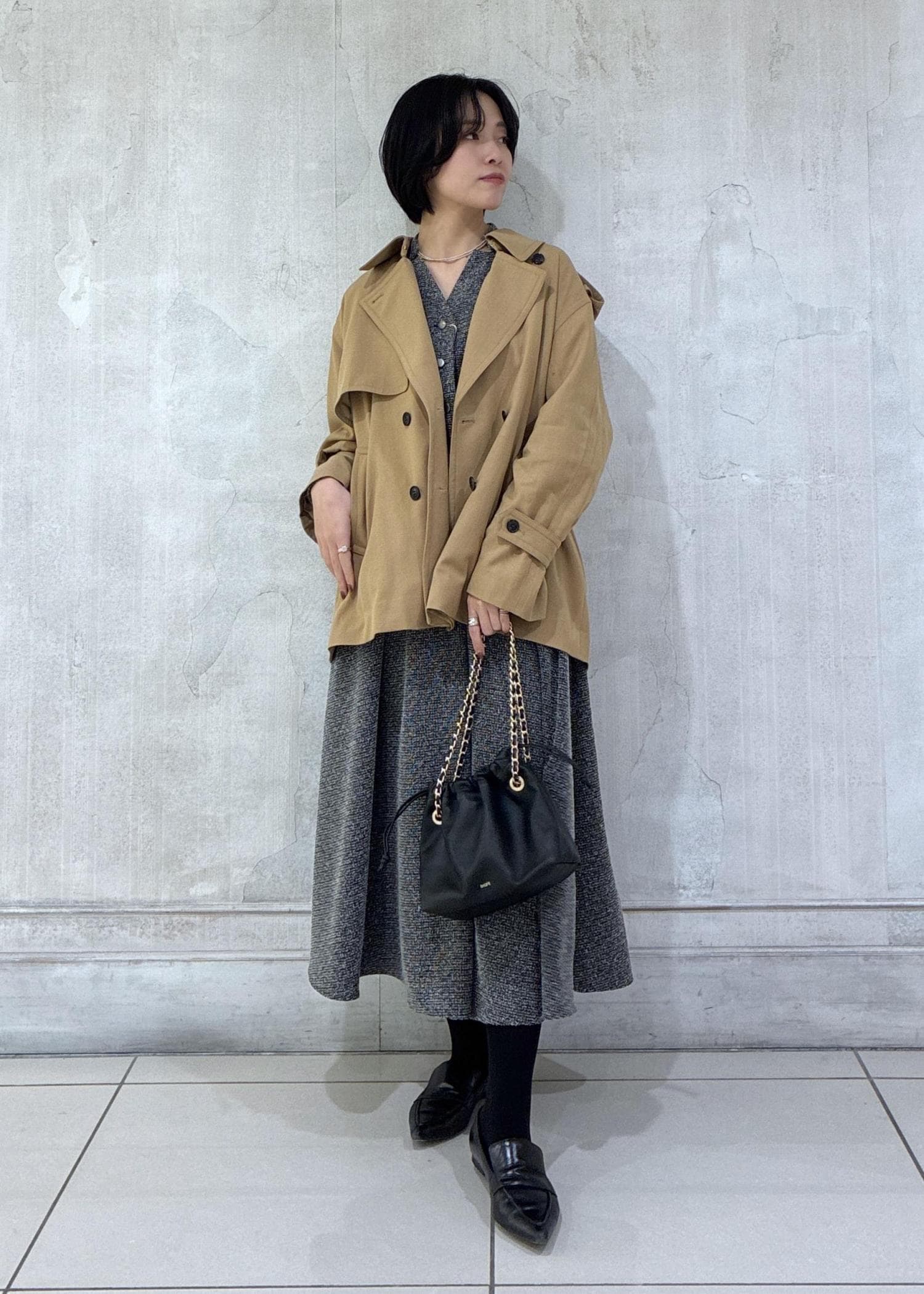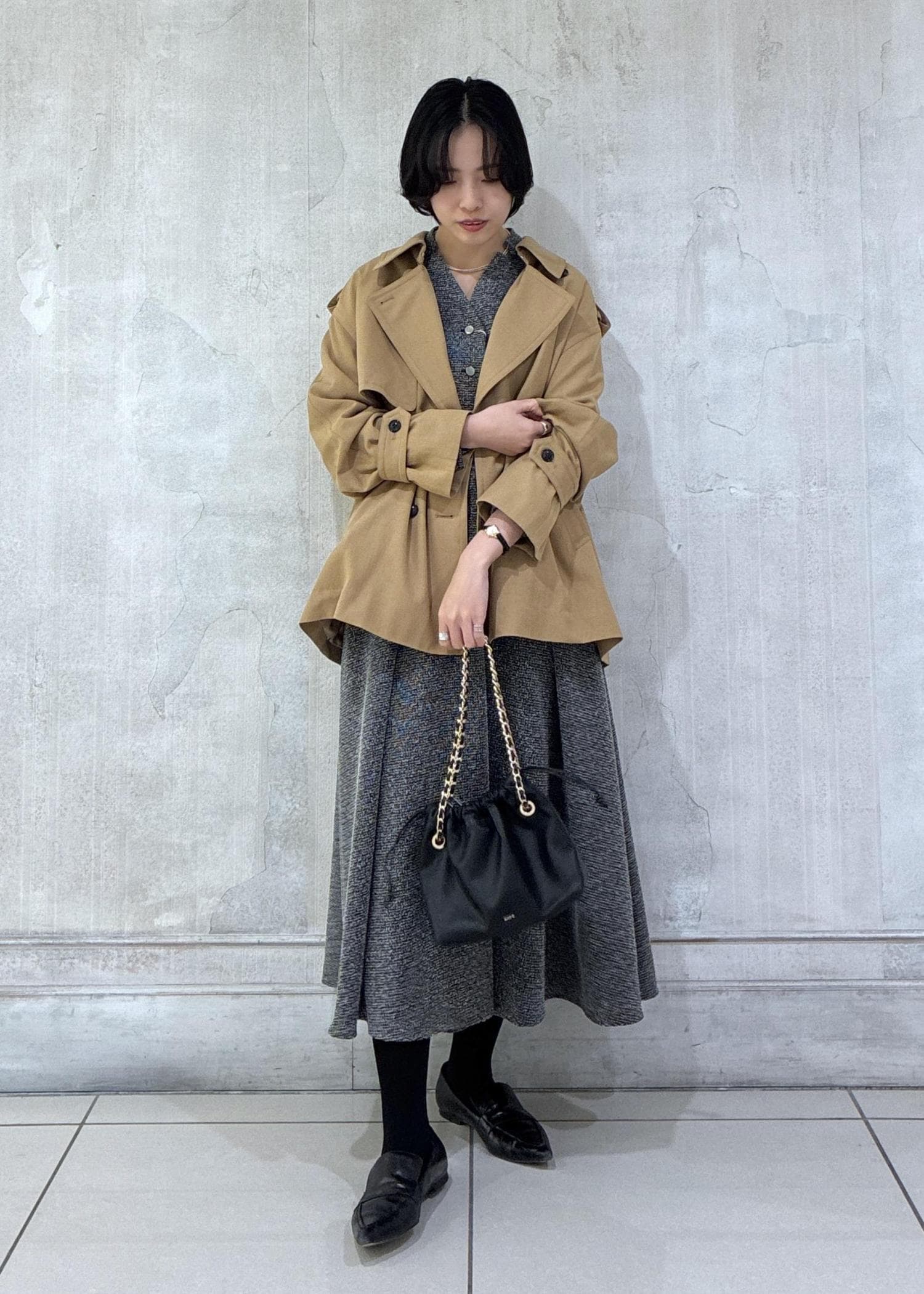 まだ風の冷たいこの時期から着用いただける素材感なので、少し先取りの春アウターでコーディネートを組んでみました♪