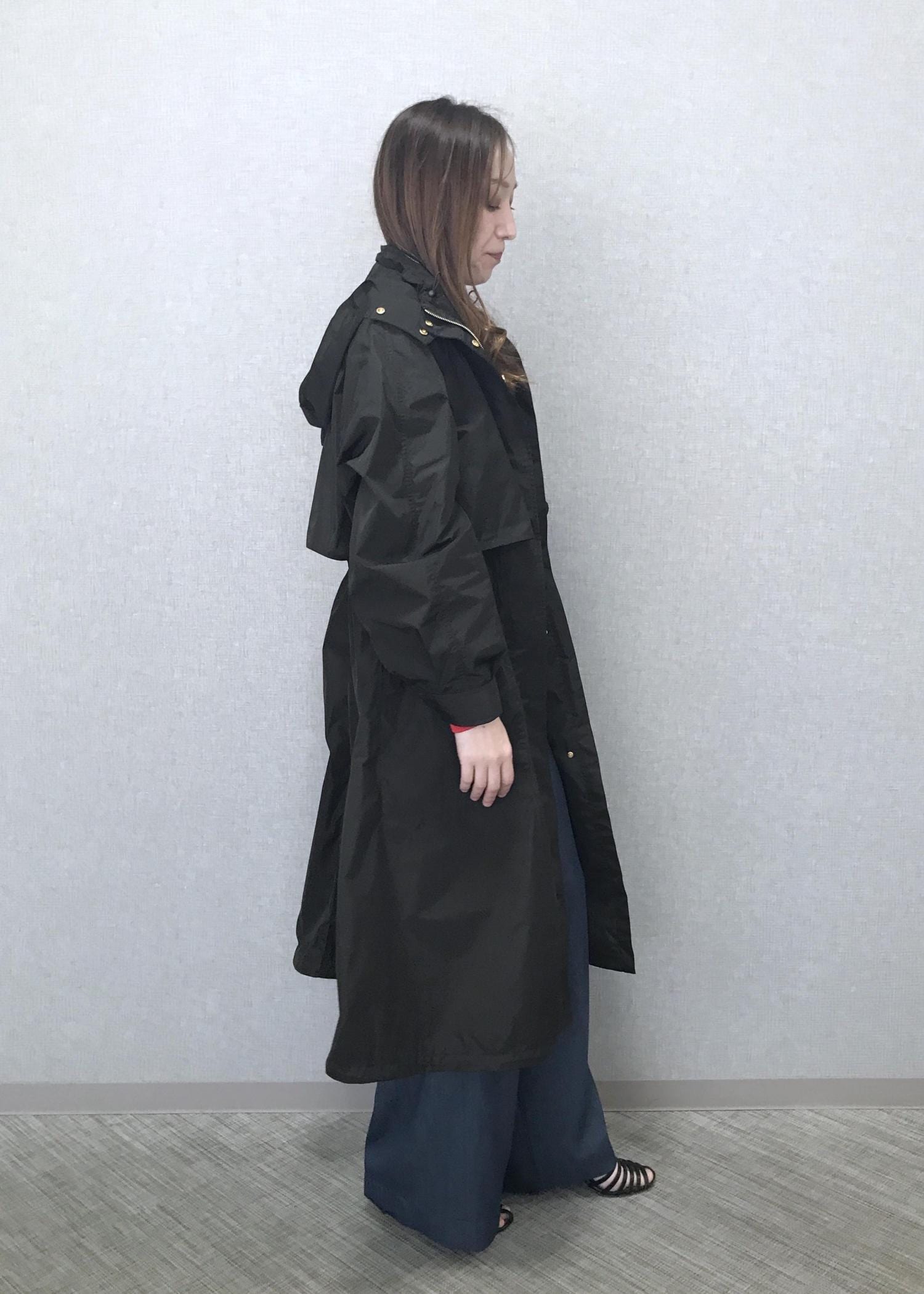 風よけ、雨よけに肌寒い時期から重宝するアウターコーディネートしてみました。