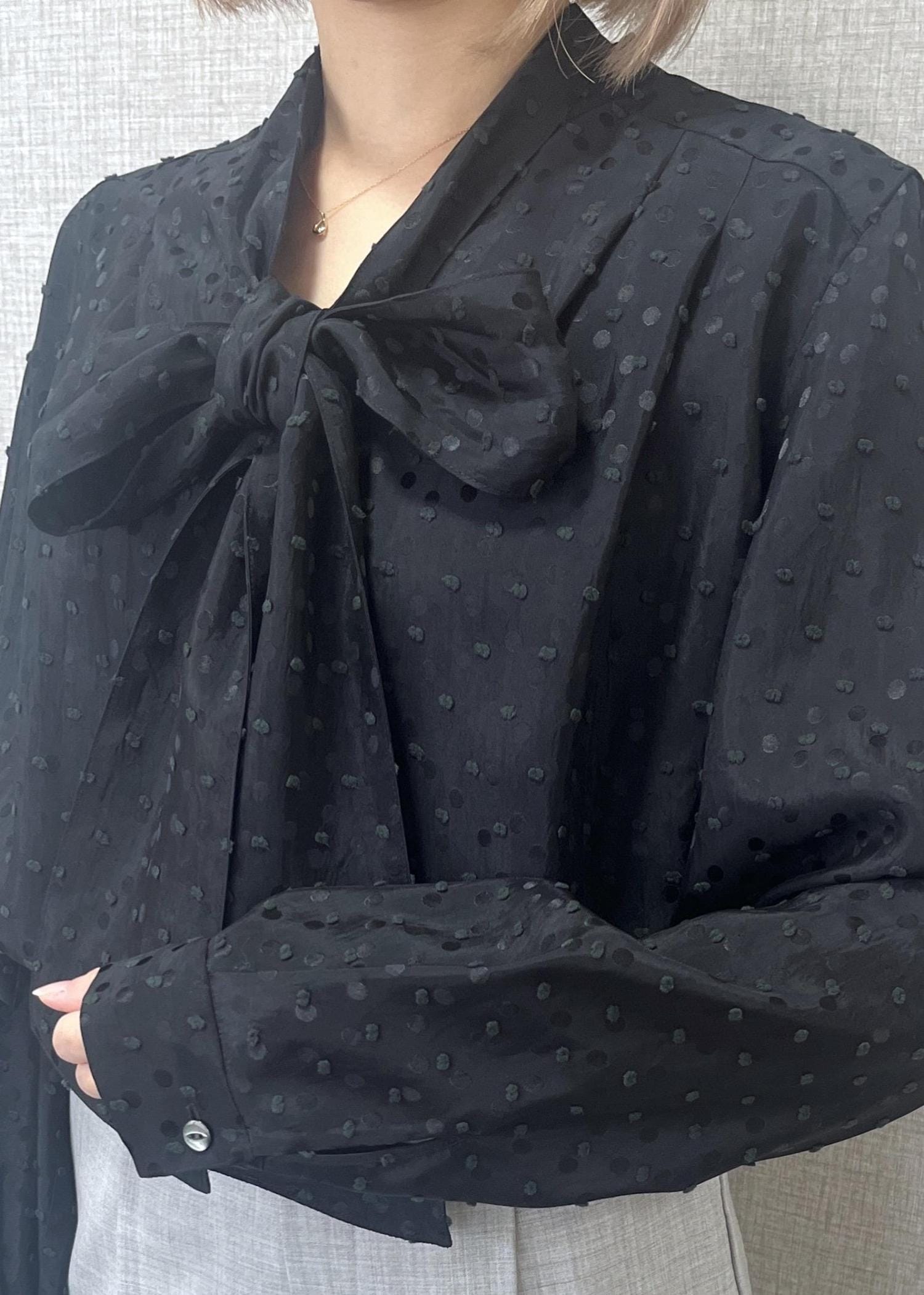 ROPÉ2WAYドットジャガードボウタイブラウス/イージーケアブラック / F¥28,600レビュー1枚でデザイン性のあるブラウスで