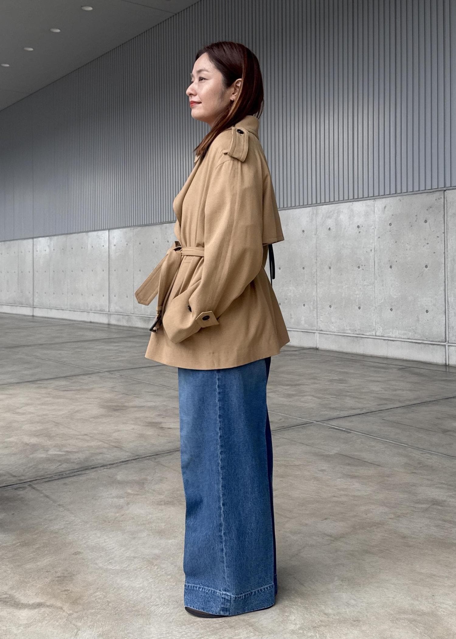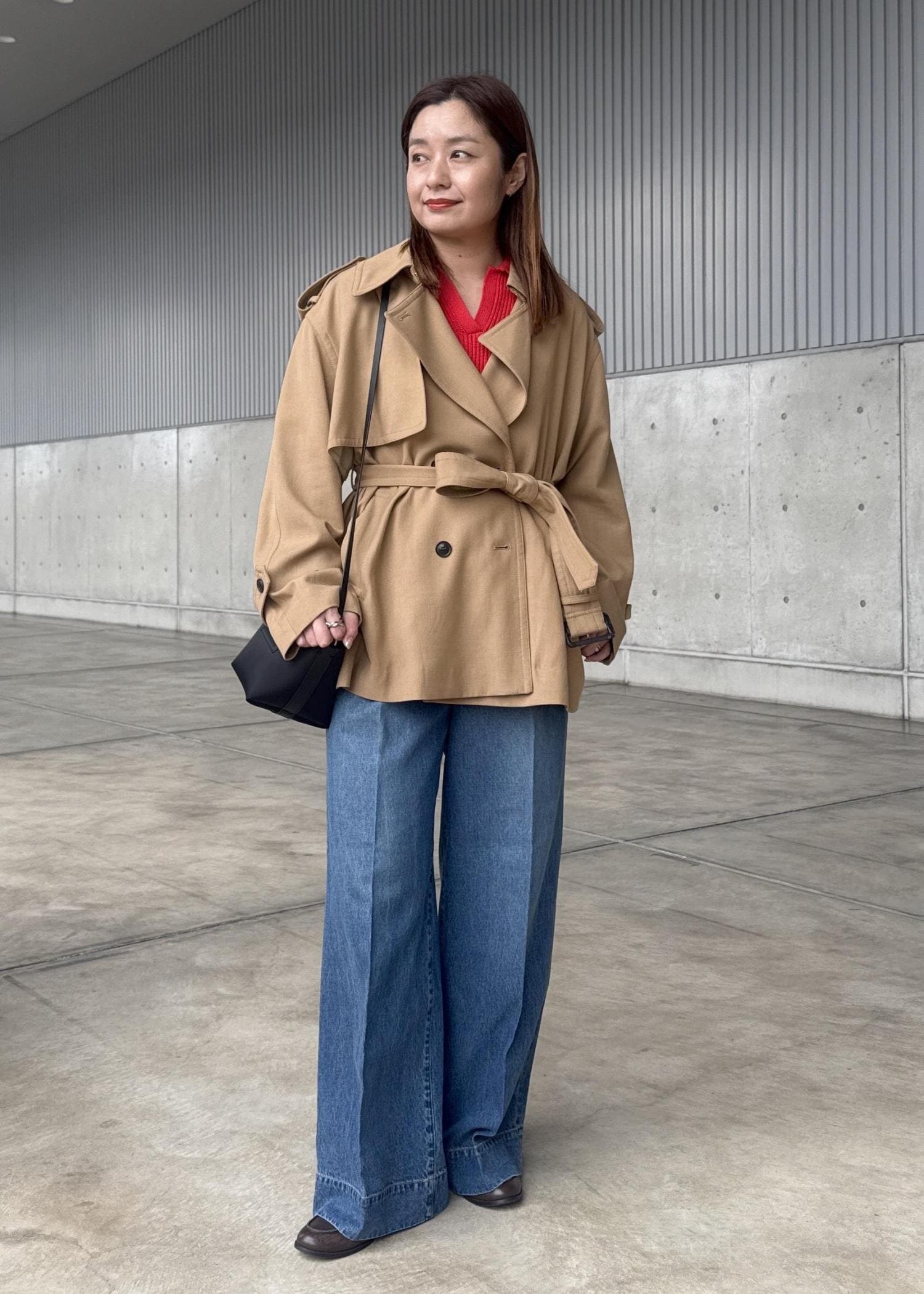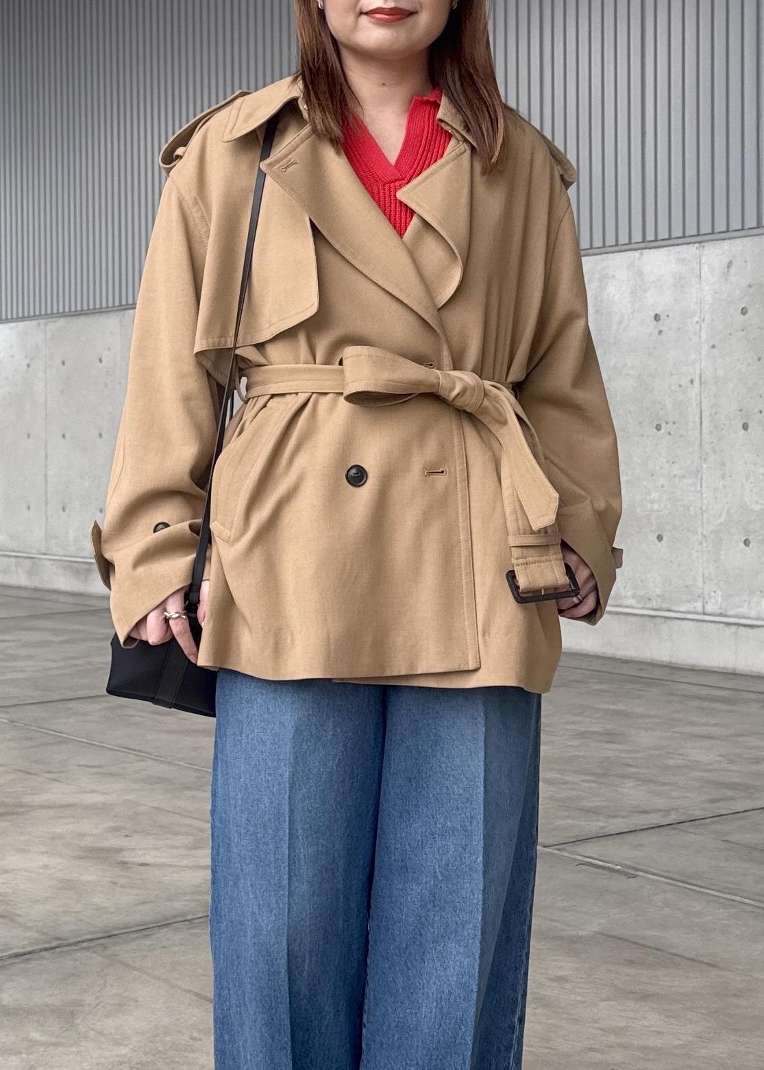 赤×デニムの鉄板コーディネートに欠かせない、トレンチ-コートを!