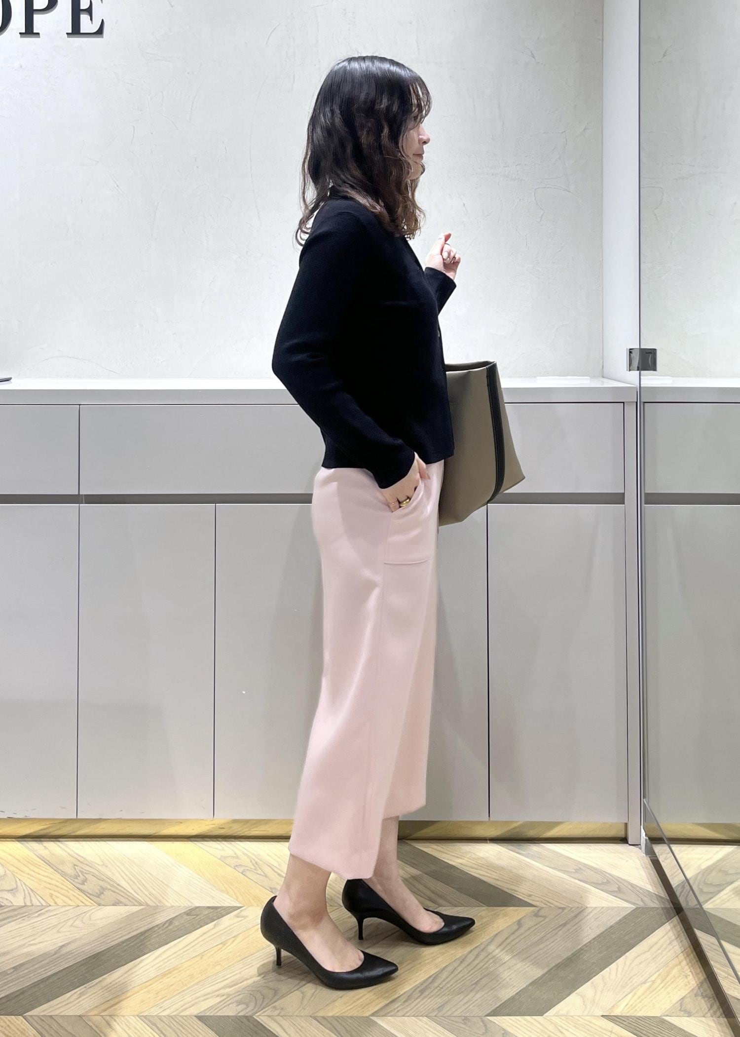 普段36サイズを選びますが、明るいカラーは少しヒップラインが気になったので38サイズにしました。