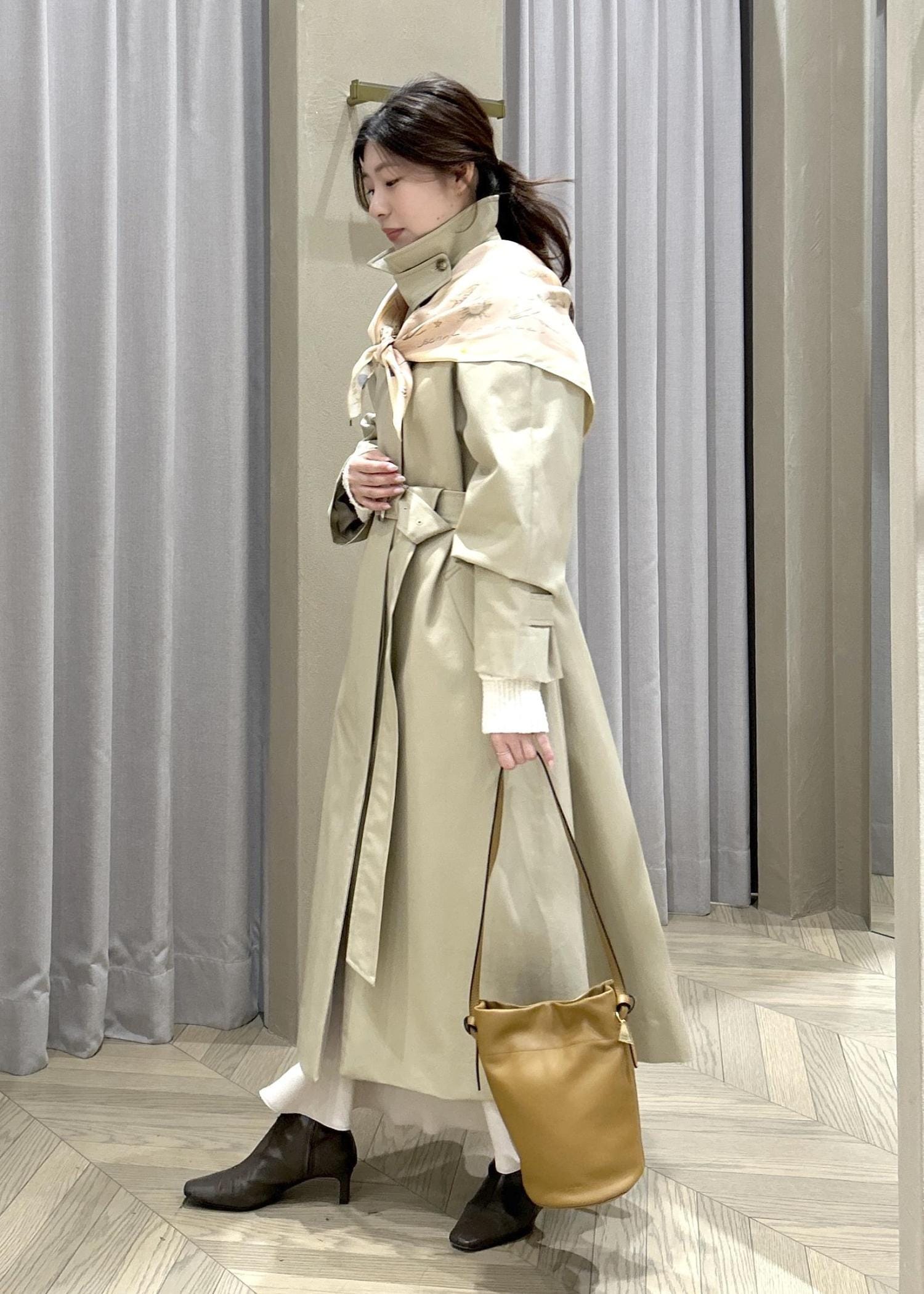 ROPÉツイルクロスステンカラーコートベージュ系 / 36¥53,900レビュー身長151㎝の私が36サイズを着用して、ふくらはぎが隠れるくらいの丈感です。