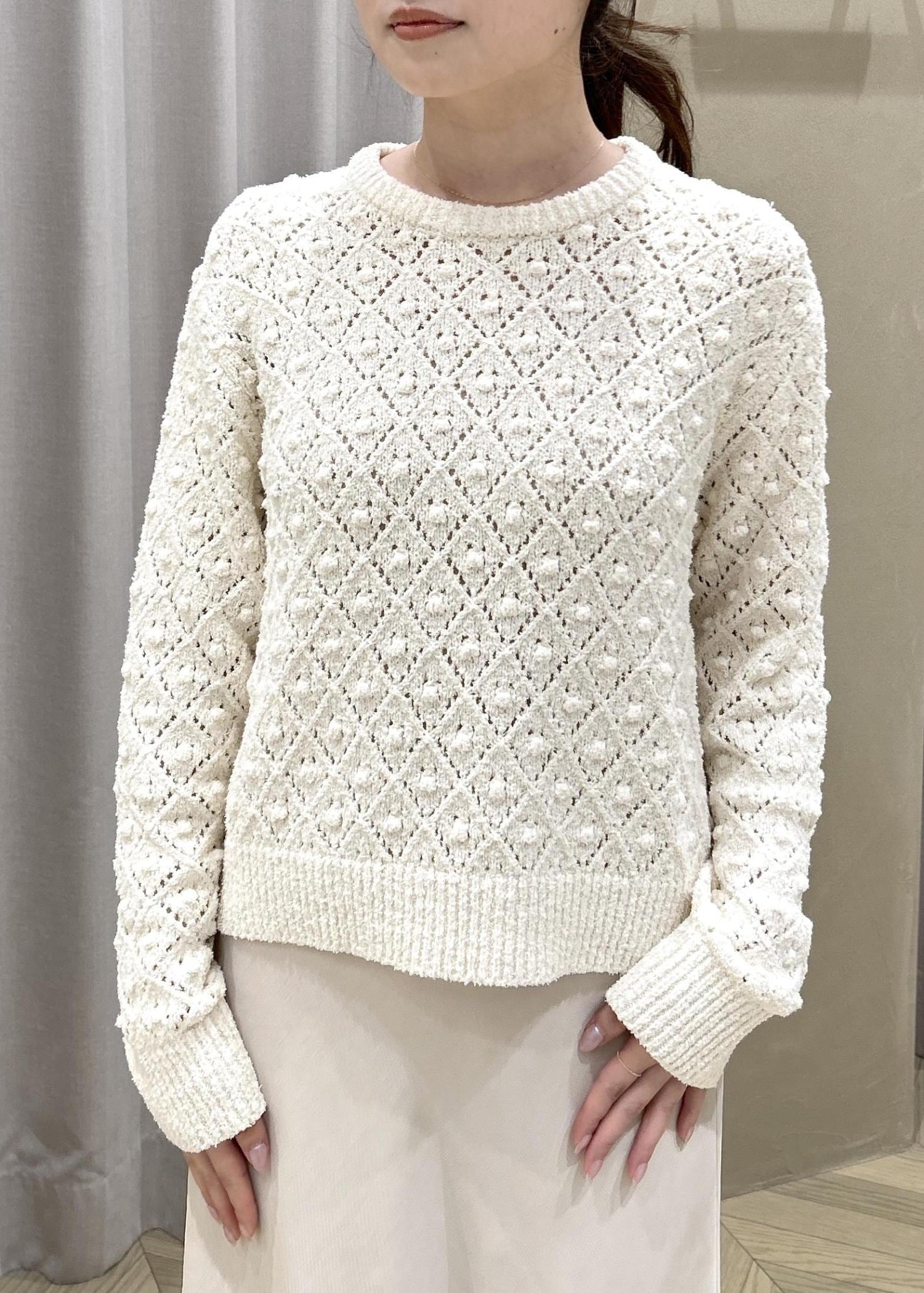 ROPÉダイヤ柄ポップコーン編みニット/イージーケアキナリ / F¥16,500レビュー腰骨が隠れるくらいの丈感で、袖丈は手が半分隠れる程度の長さです。
