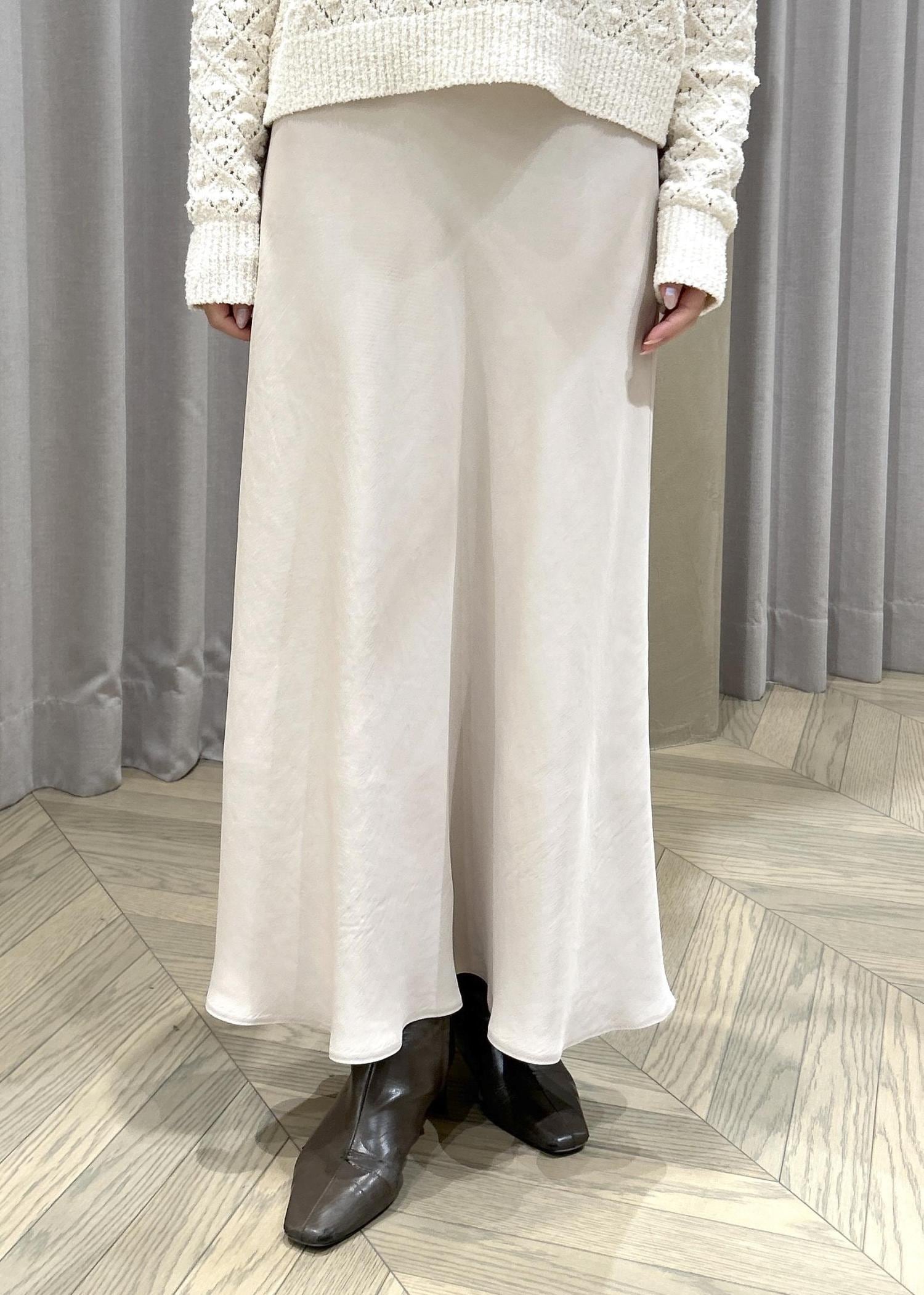 ROPÉリンクルサテンマーメイドスカートベージュ / 36¥25,300レビュー身長151㎝の私が36サイズを着用してくるぶしの上あたりの丈感です。