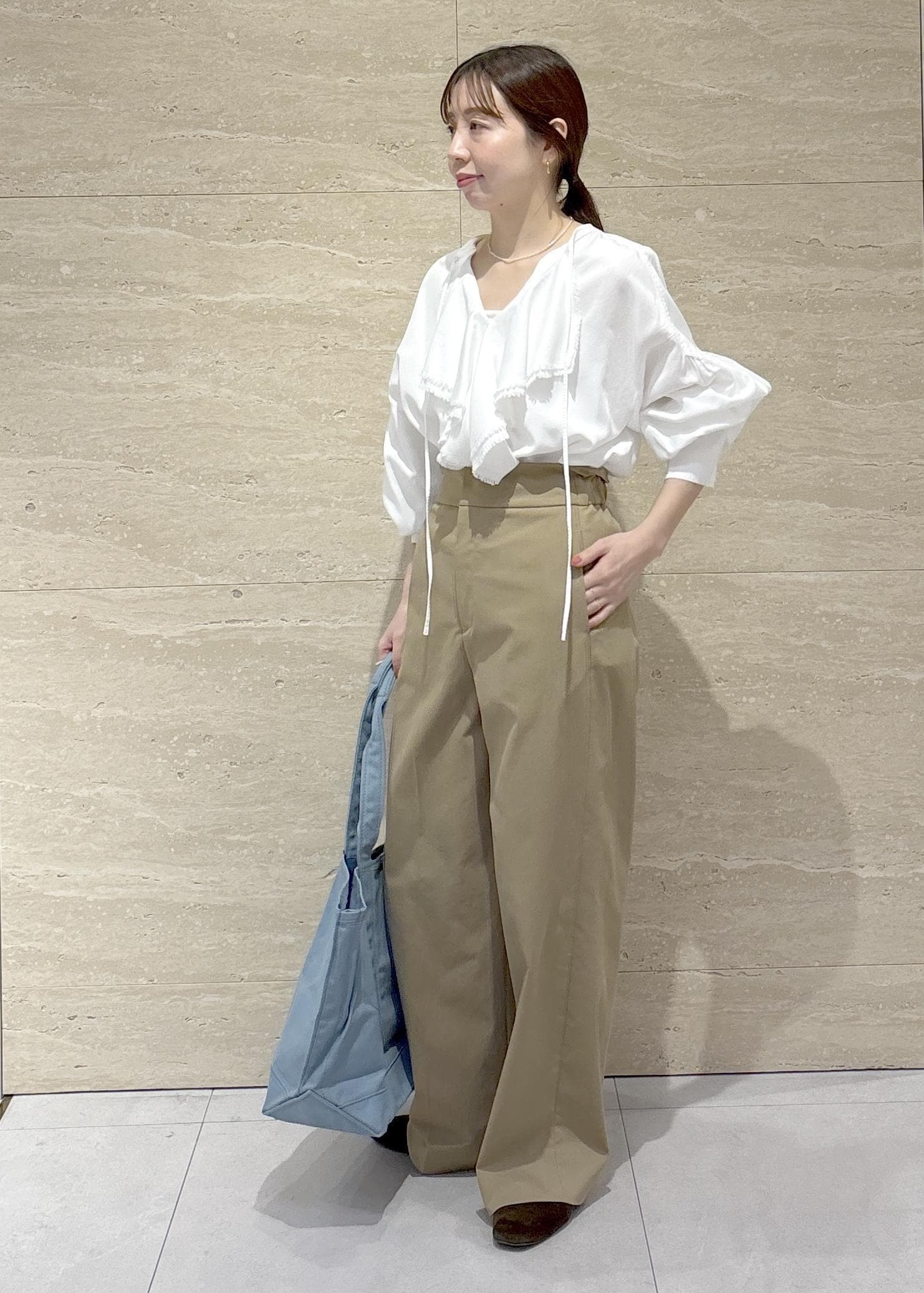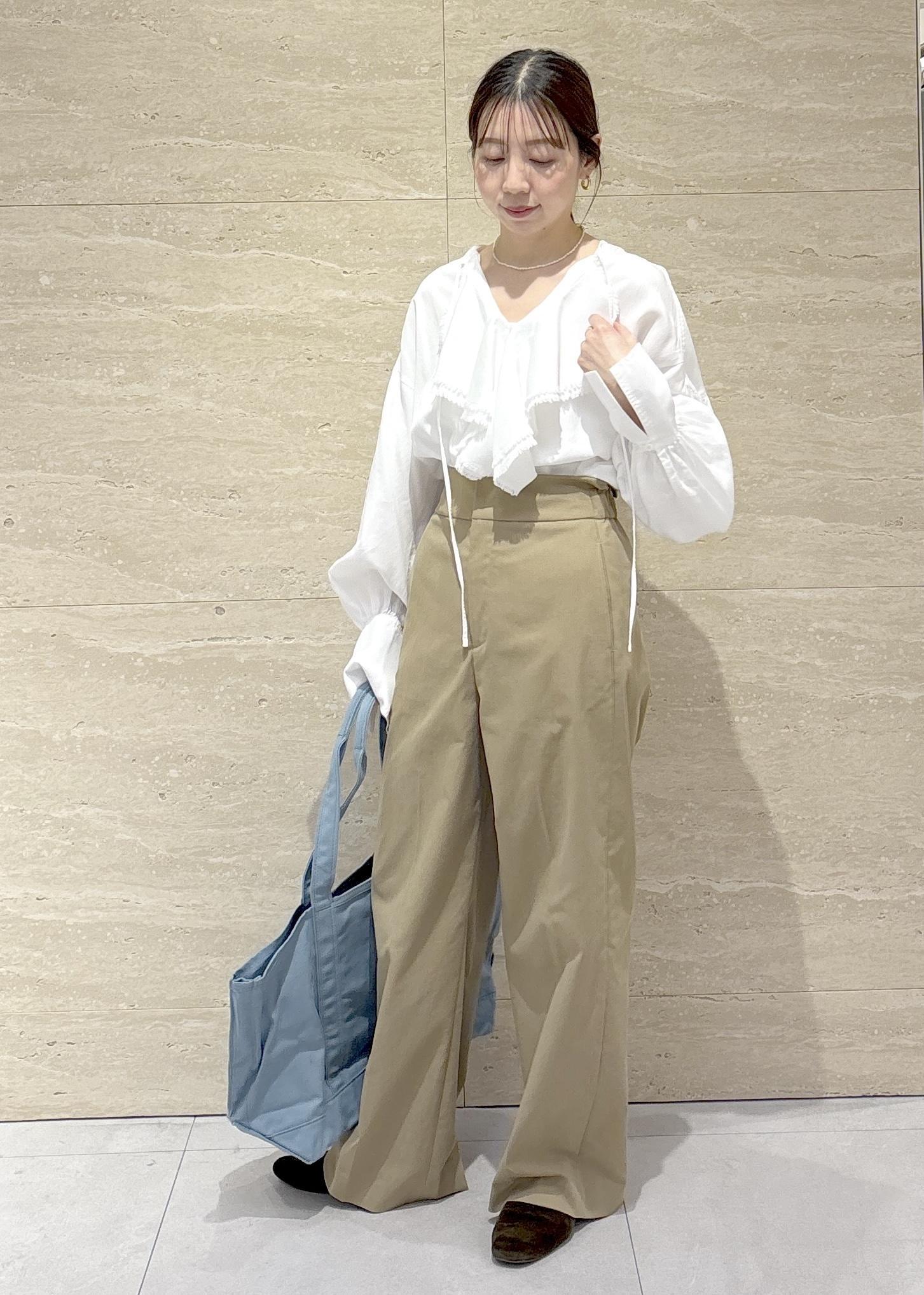 甘すぎないようハイウエストのパンツに合わせて大人カジュアルコーデにしました。