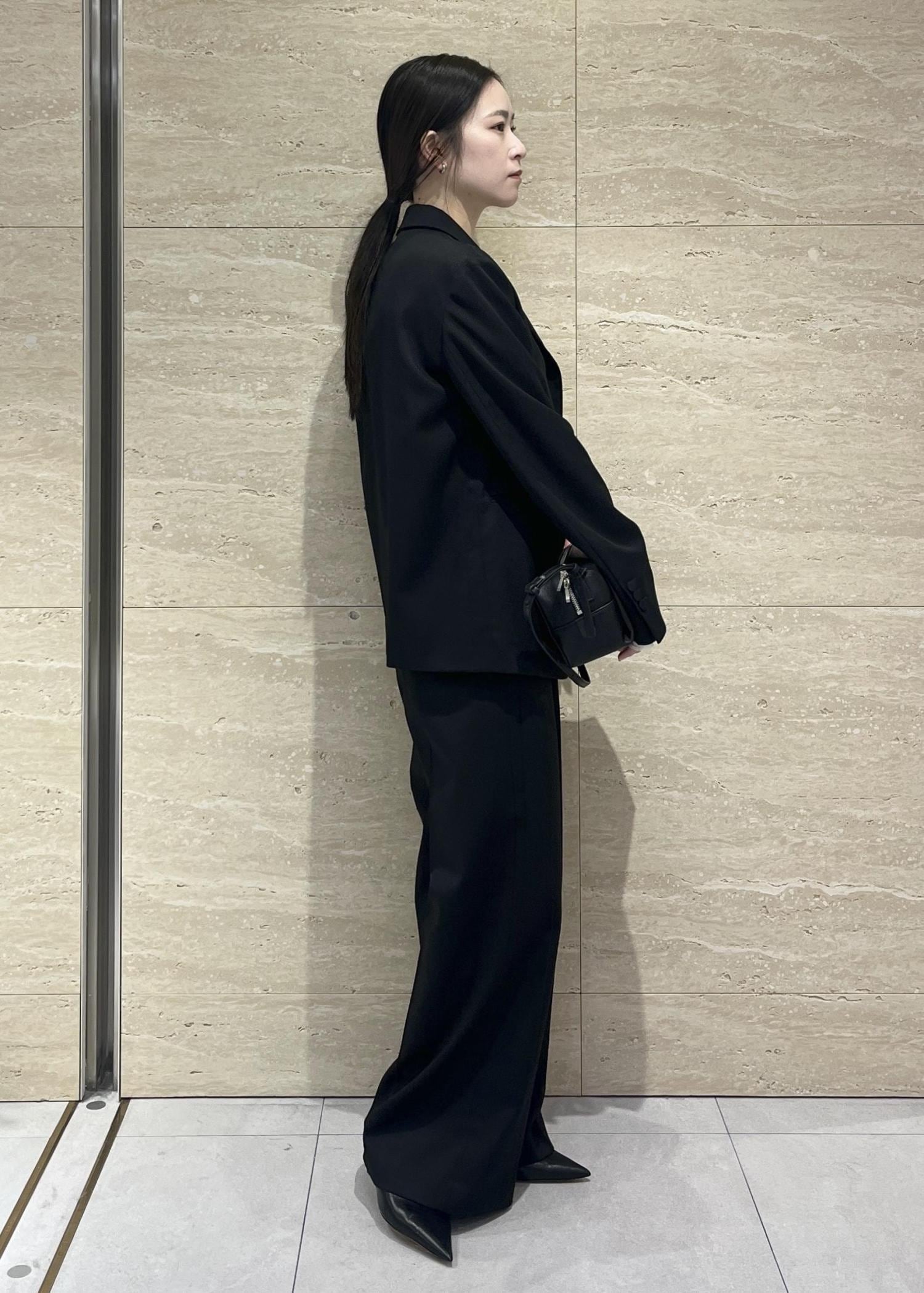 ROPÉトリアセツイル ワンタックイージーワイドパンツ(デニムライク)/イージーケア・セットアップ対応ブラック / 36¥27,500レビュー155㎝だと36サイズは3㎝程のヒールで着用できました。