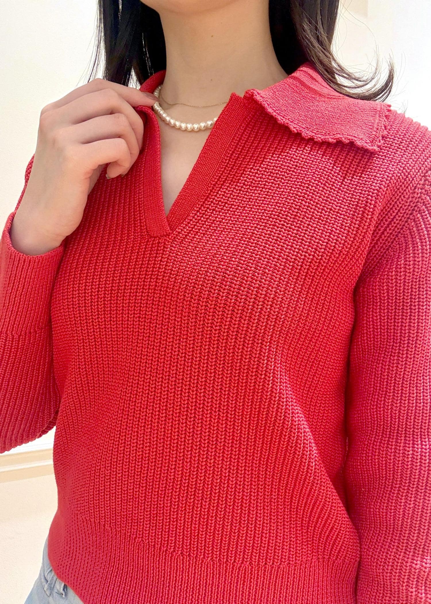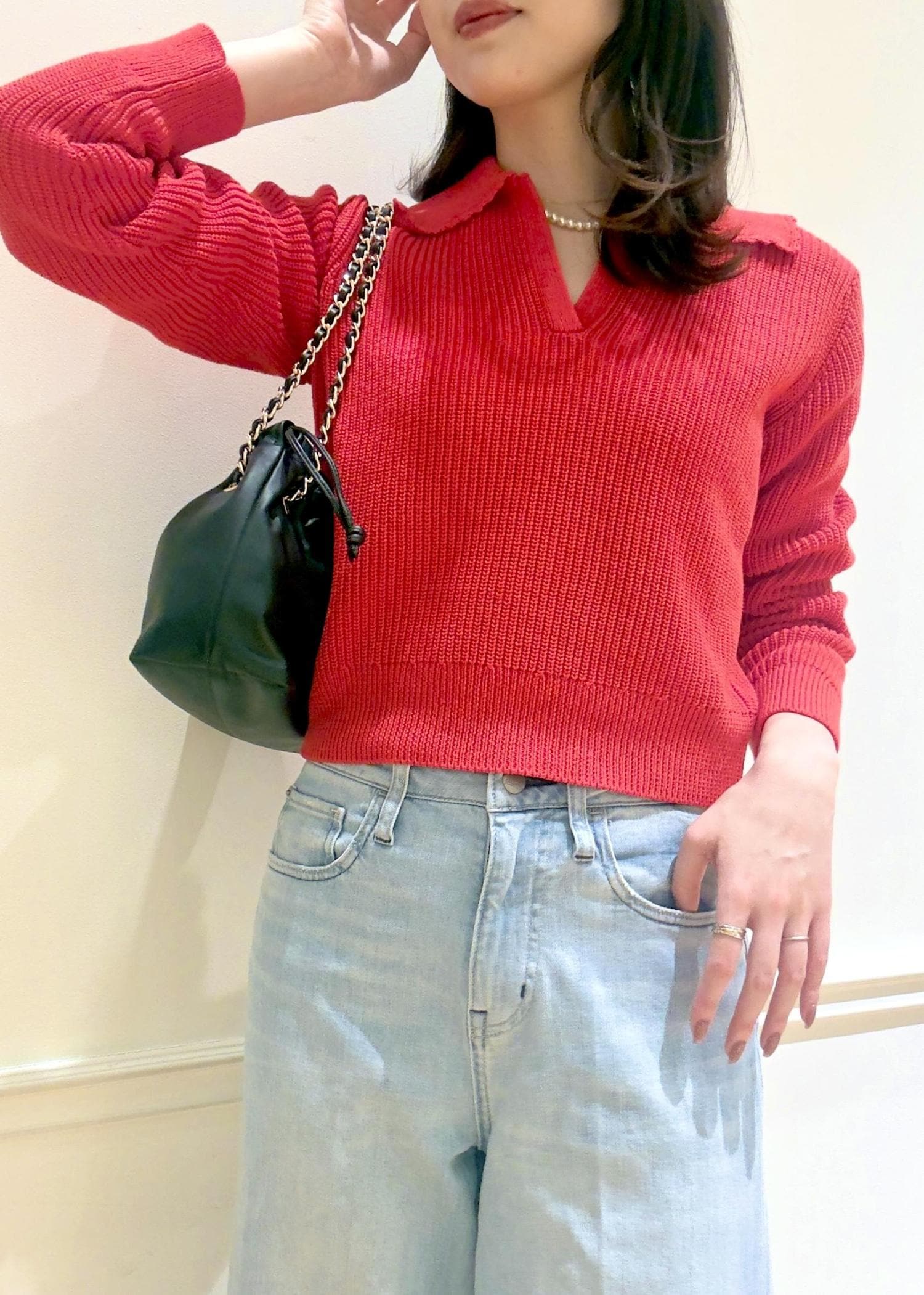 ROPÉオーガニックコットンポロニットプルオーバー/イージーケアレッド系 / F¥19,800レビュー身長165cmでFサイズを着用しています。