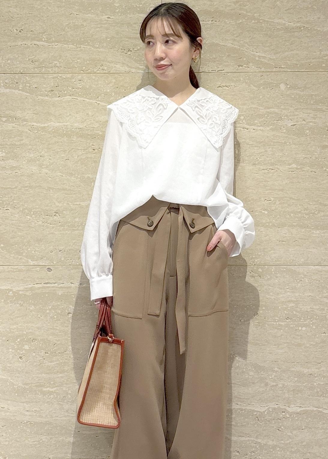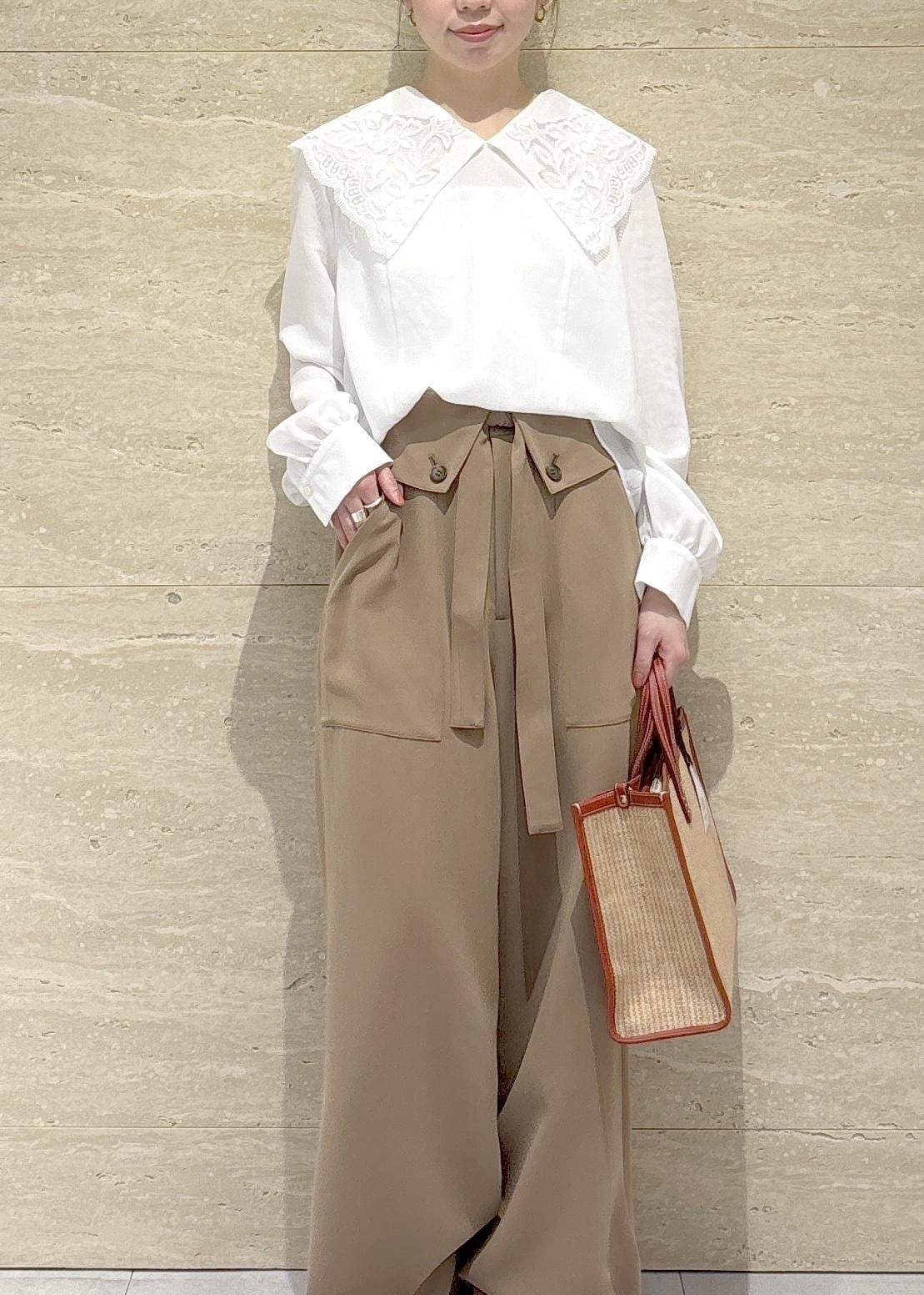 大きめのレース襟が目を惹くブラウスを主役にコーデしました✨