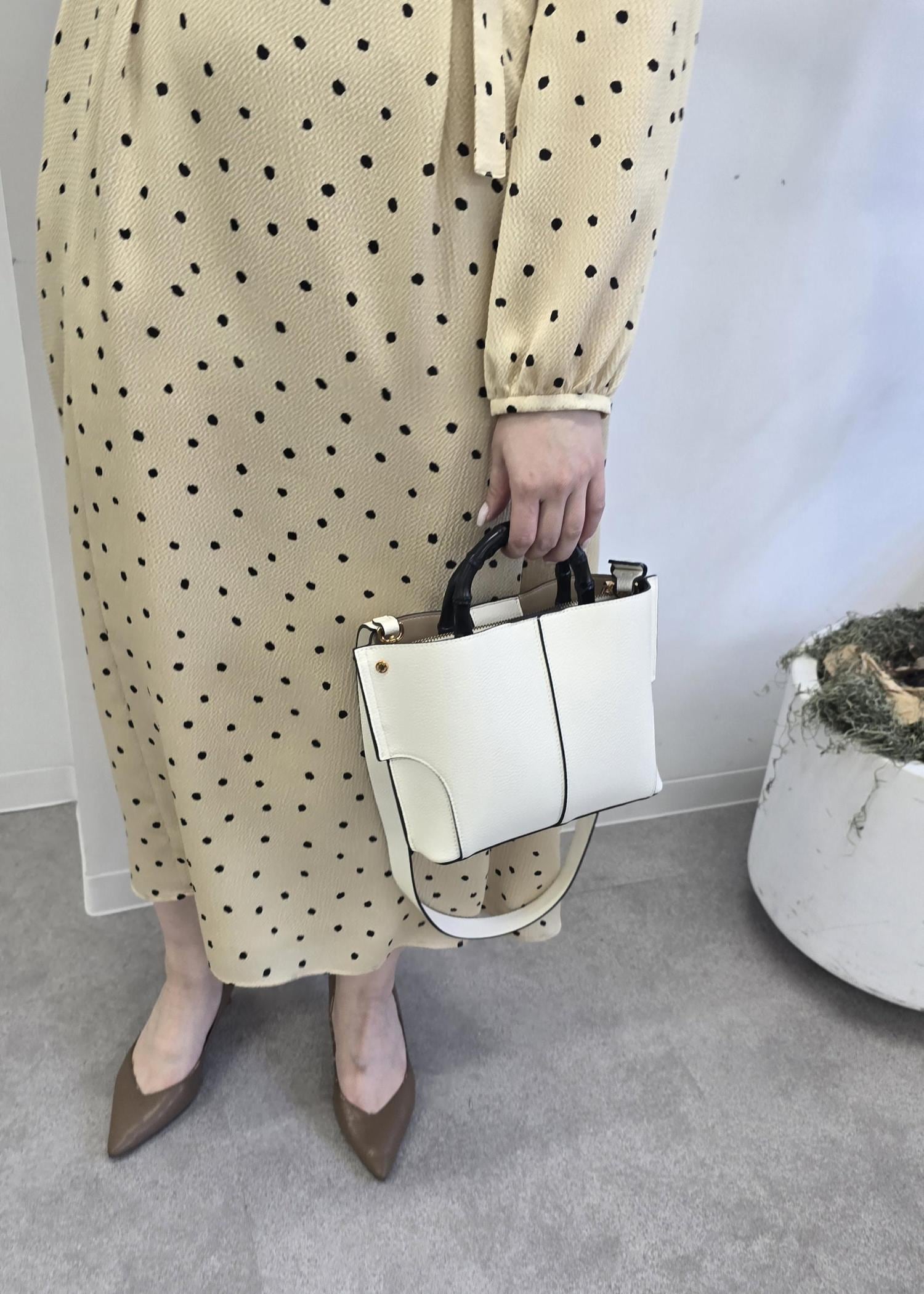 ROPÉ【E'POR】BAMBOO BAG Mini/超軽量・26SSS新色追加オフホワイト / F¥18,150レビュー最低限のお手荷物(ミニ財布、ハンカチ、リップ、ハンドクリーム、スマホなど)は余裕をもって入るサイズ感です。