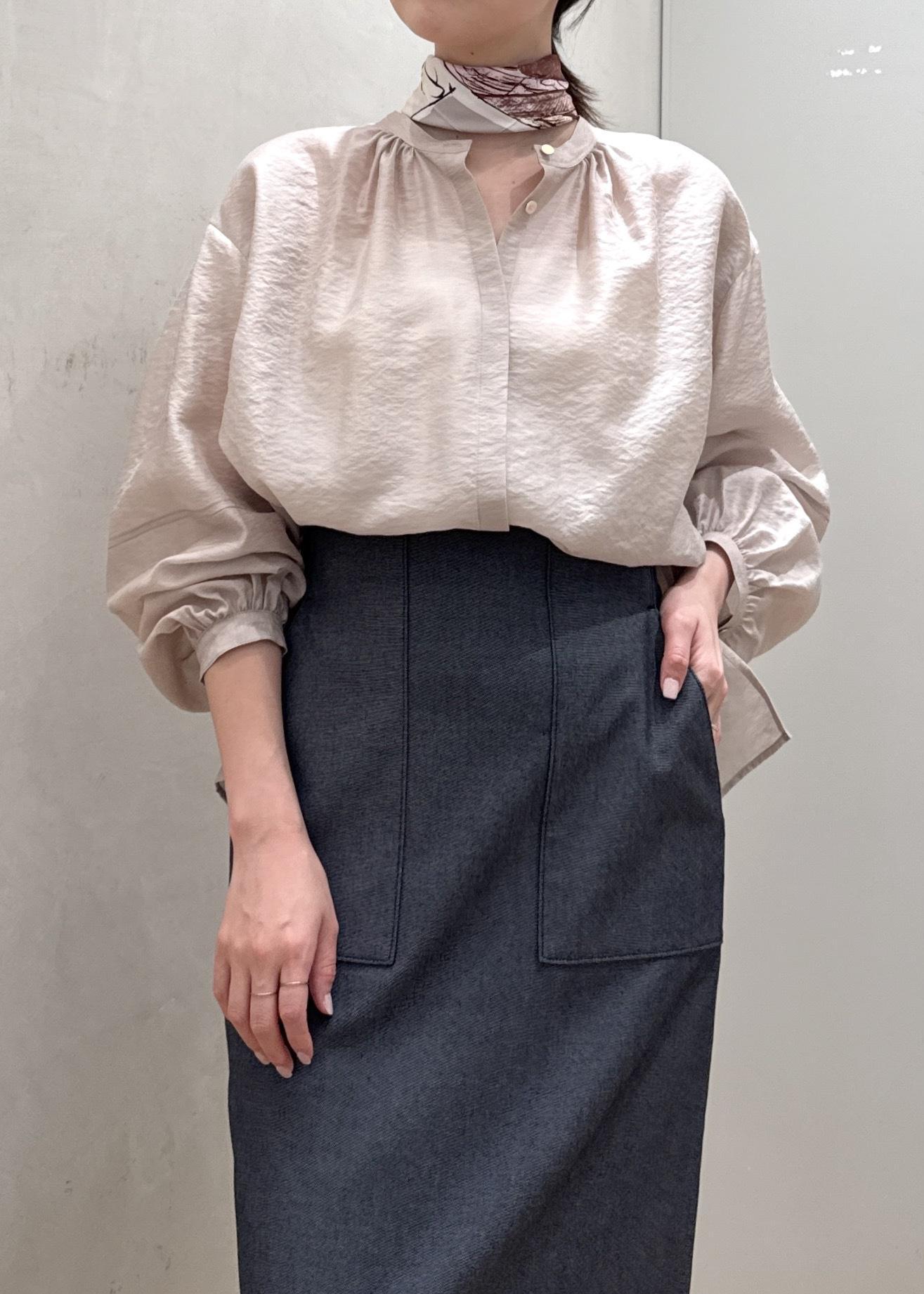 ROPÉキュプラシルクボリュームスリーブブラウス/イージーケアベージュ系 / F¥19,800レビューツヤのあるシルク混の素材。