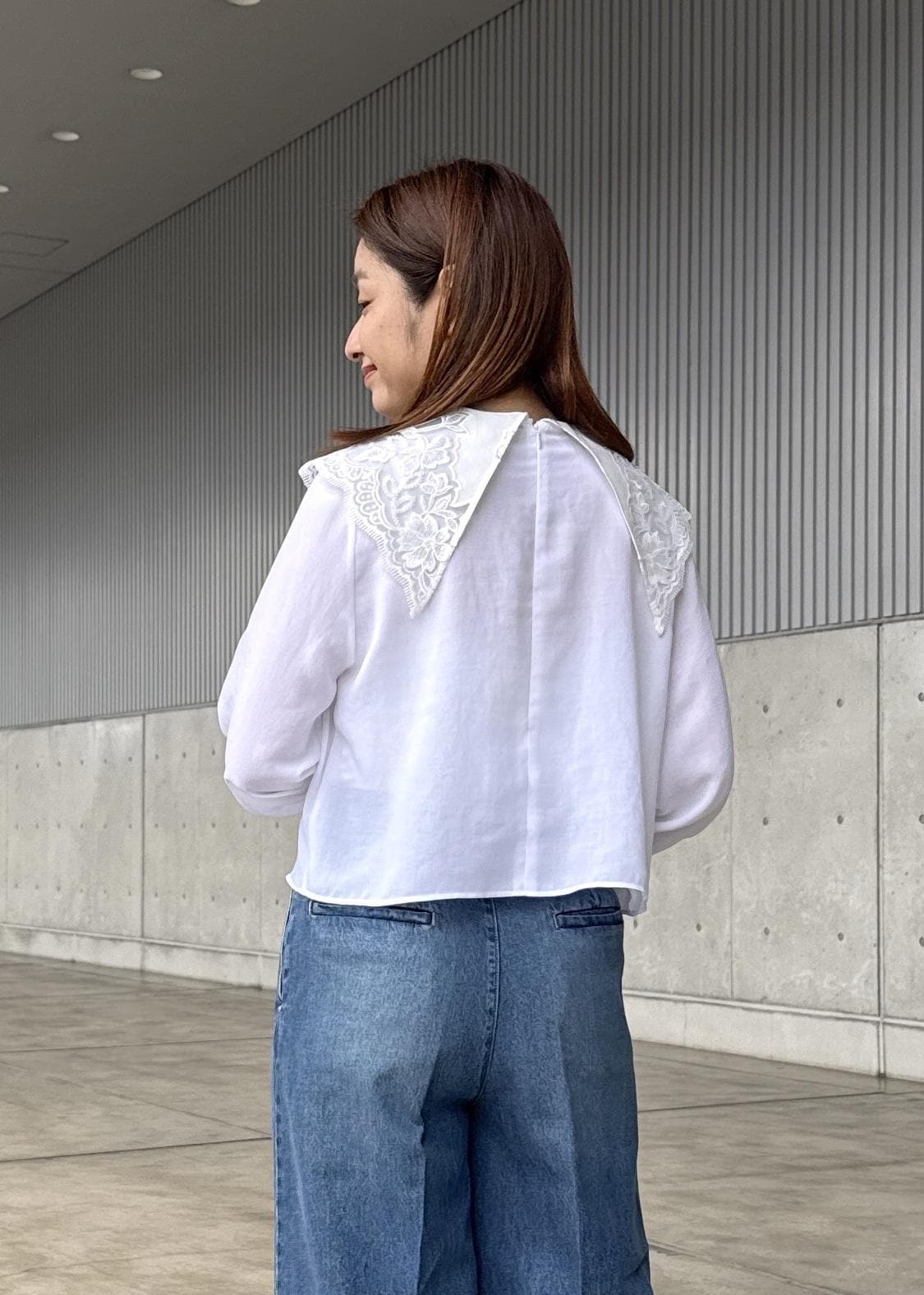 ROPÉレースカラープルオーバーブラウスホワイト / F¥26,400レビュー付け衿のような存在感のあるレース衿がとっても個性的でいて、女性らしい柔らかな雰囲気を演出してくれるアイテムです!