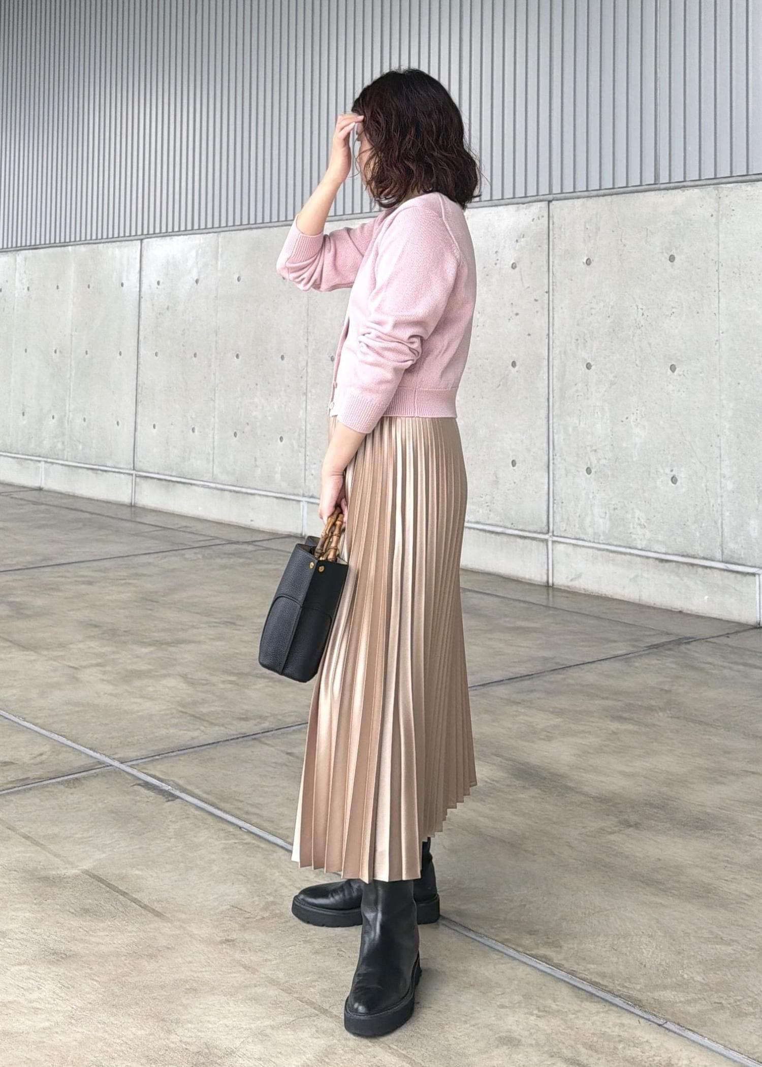 ROPÉシャイニープリーツスカート/イージーケアベージュ系 / F¥26,400レビュー身長161㎝で普段38サイズを着用。
