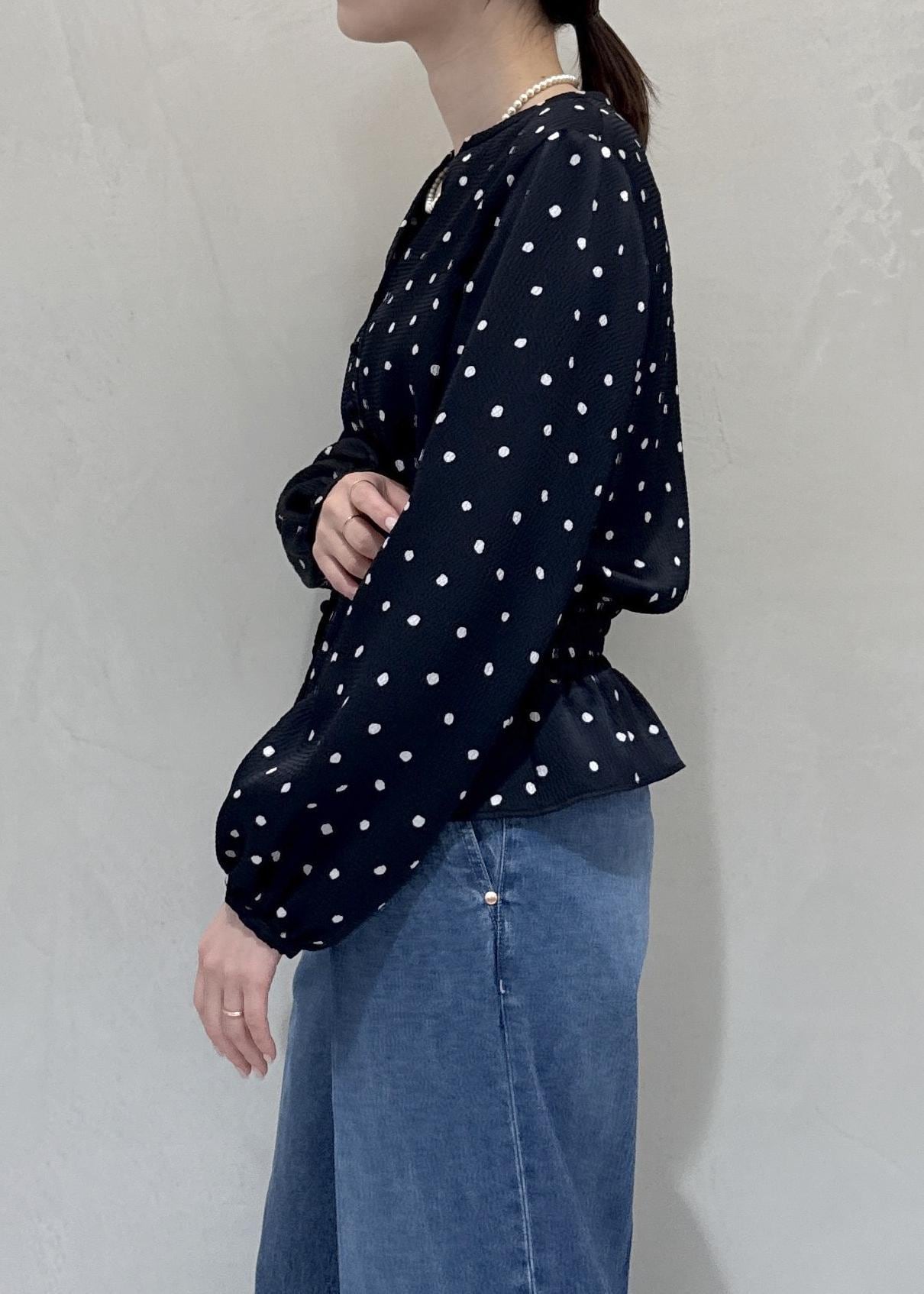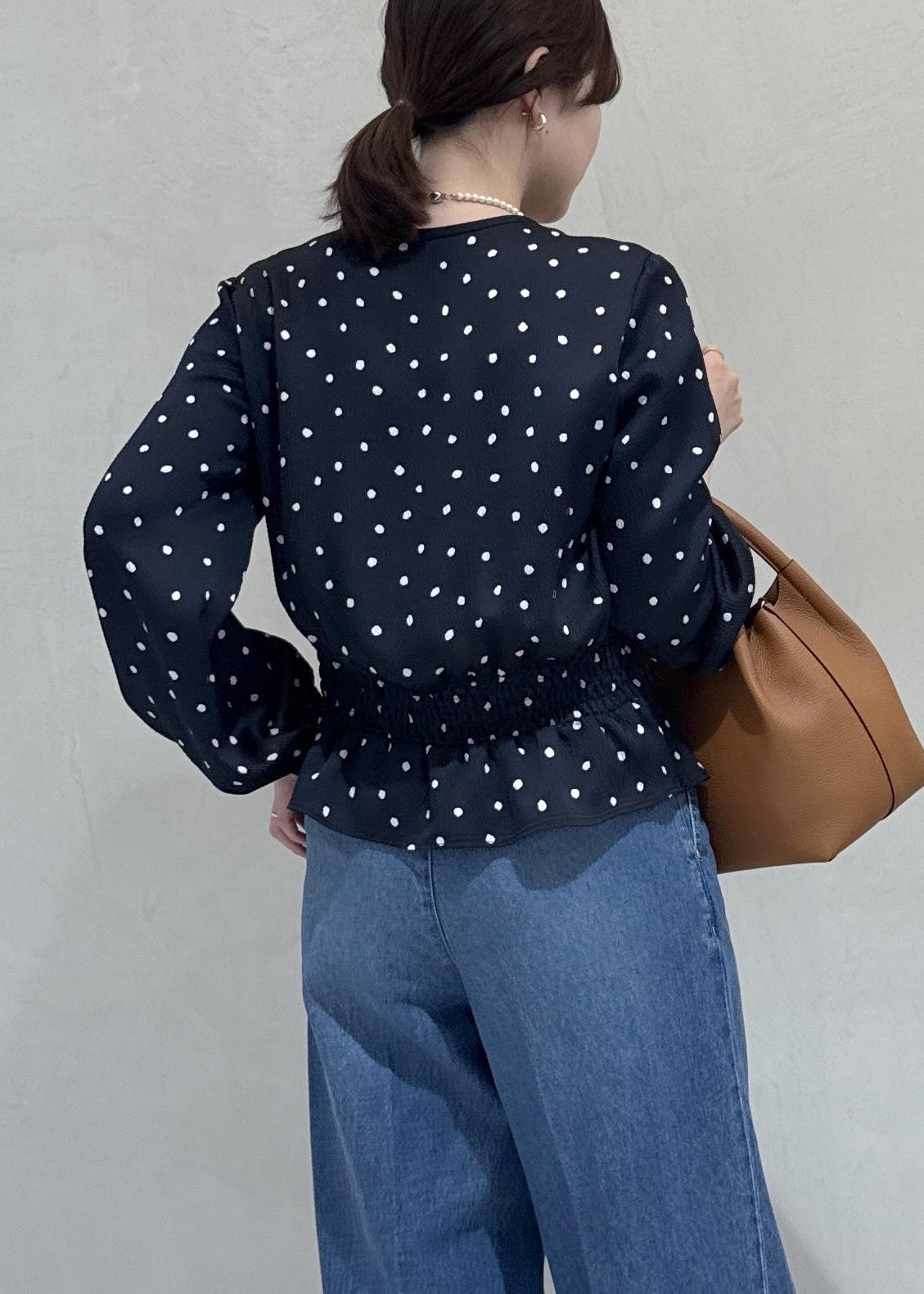 ROPÉドットプリントペプラムブラウス/イージーケアネイビー / 38¥26,400レビュー着丈はお腹にかかる長さ、