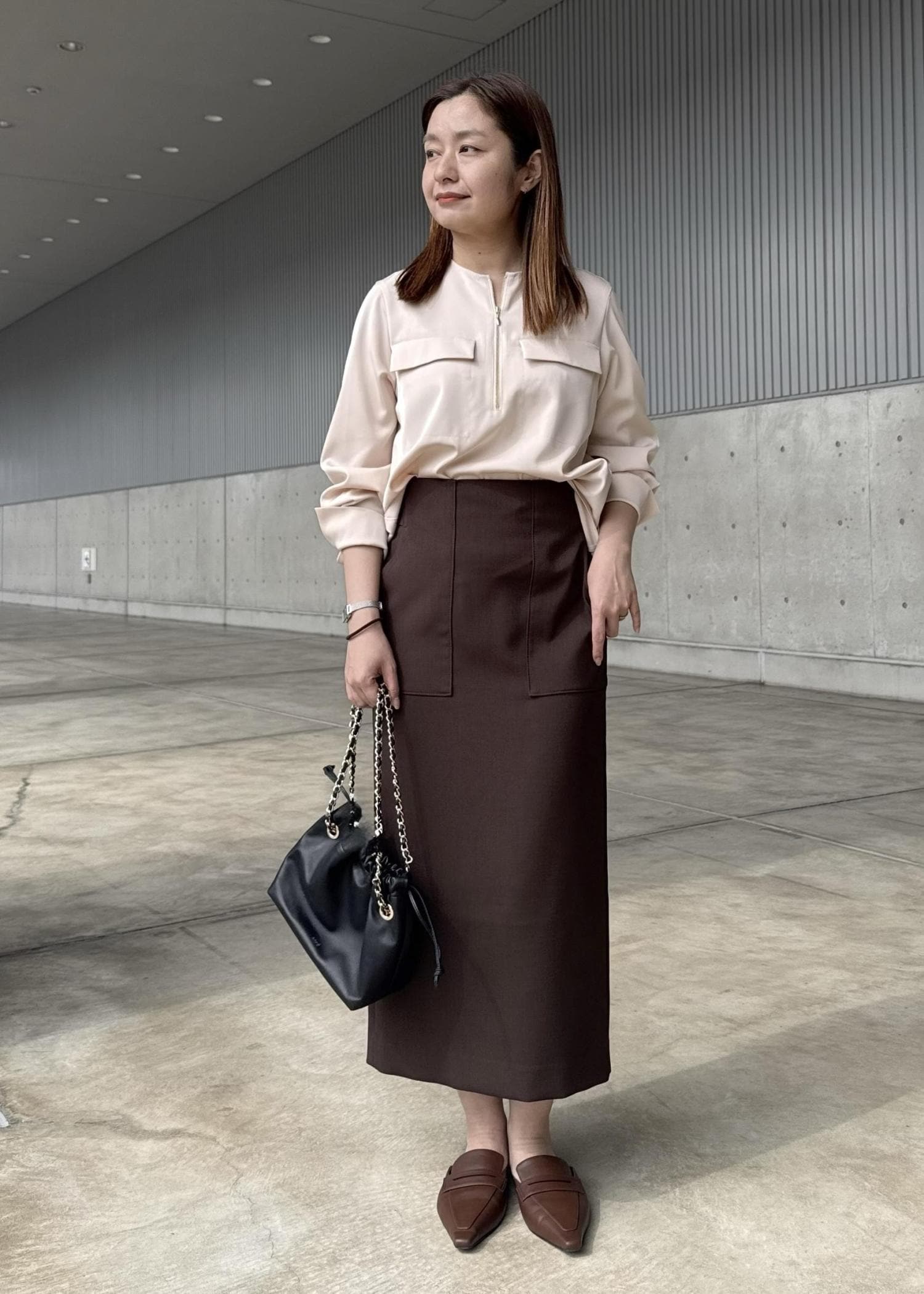 チェーンバッグでも巾着型になっているので、コンサバにならないです〇