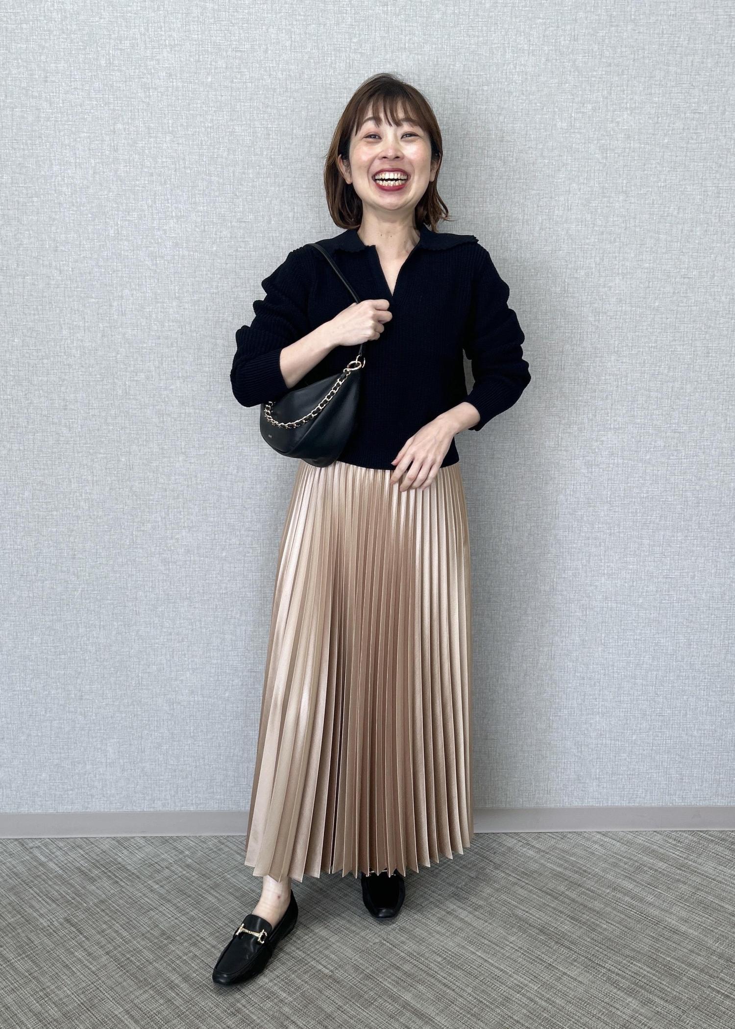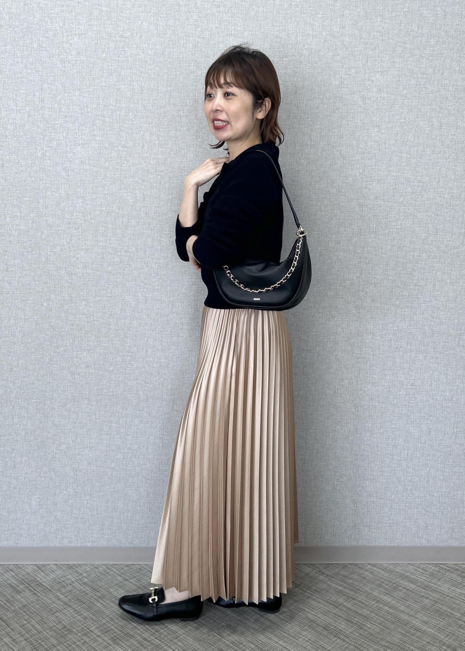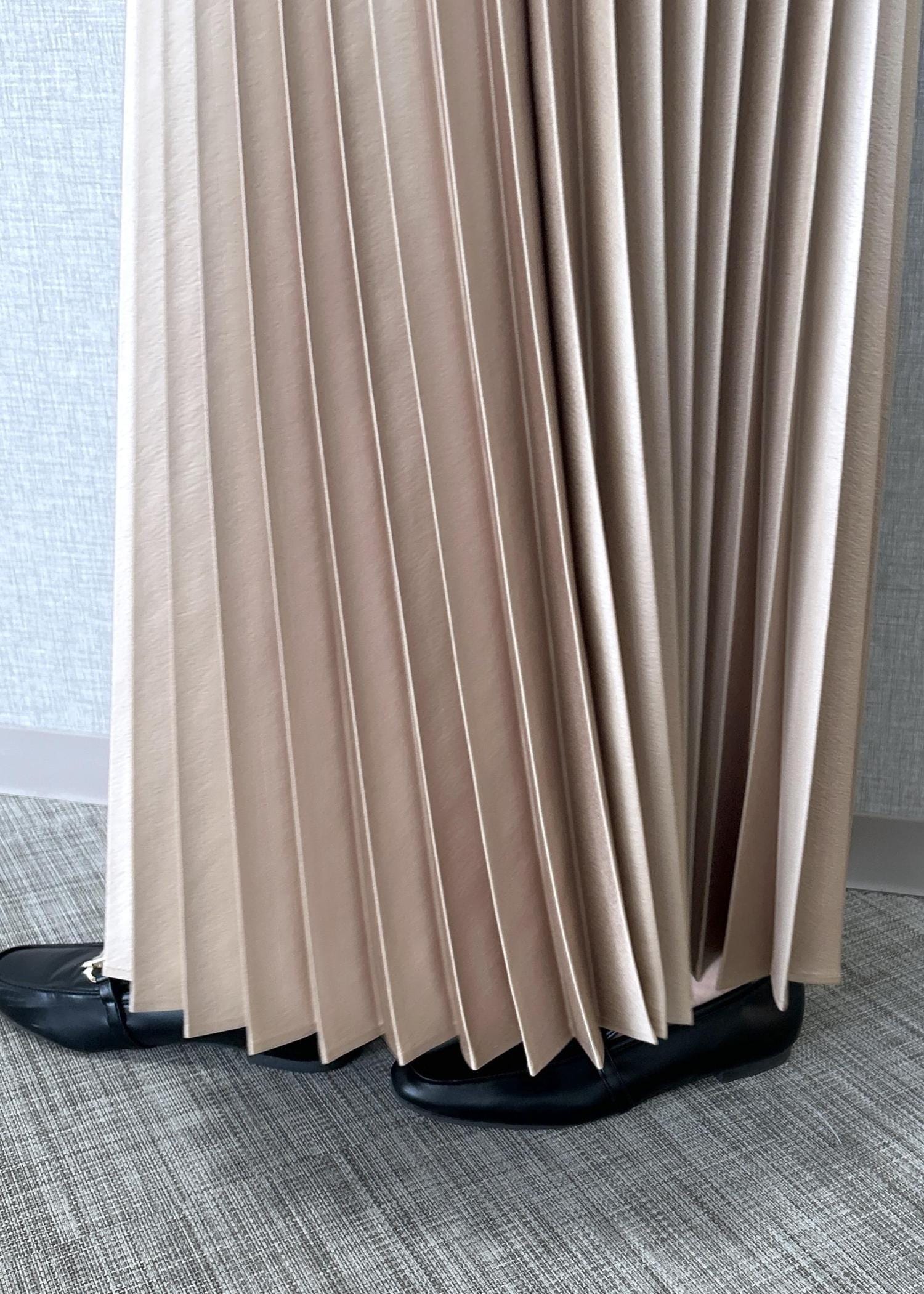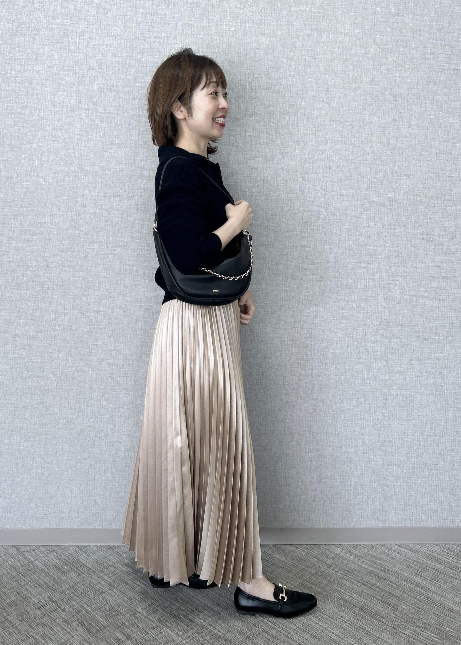 ROPÉシャイニープリーツスカート/イージーケアベージュ系 / F¥26,400レビュー着丈は踝から2〜3cmほど上迄の長さです。