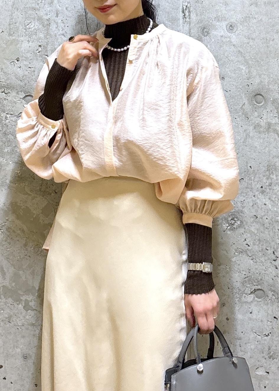 やわらかな光沢感あるブラウスに
